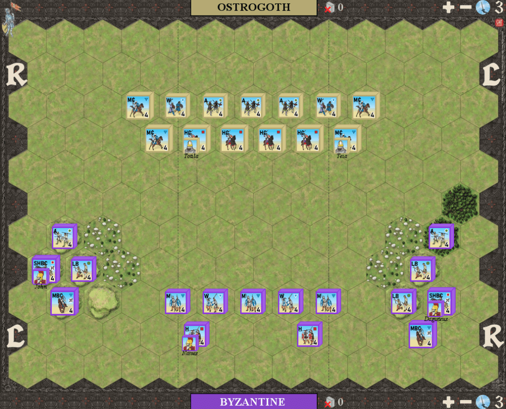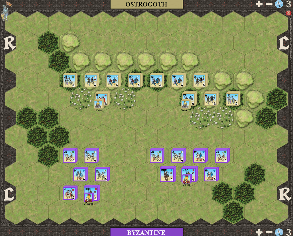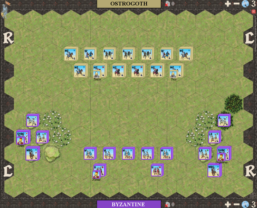 - However, when the Roman left joined the fray, and attacked my column from the flank, all hopes were gone. The game ended with the Ostrogoths severely routed!