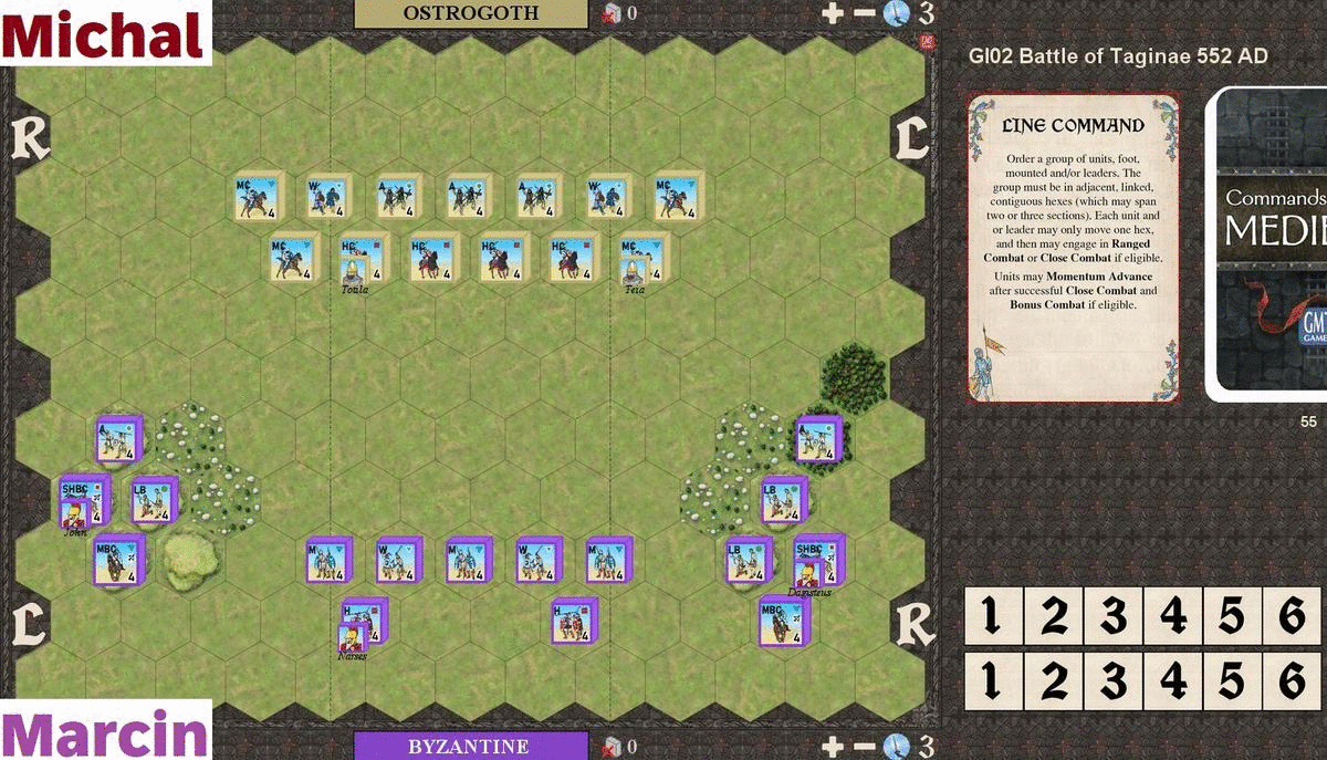 This is one is pretty confrontational and you can easily predict what will happen (Ostrogoth charge in the center) – but not how it will end! Let us see key actions of our game: