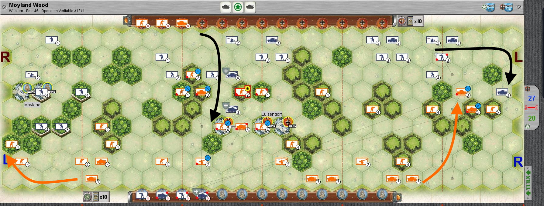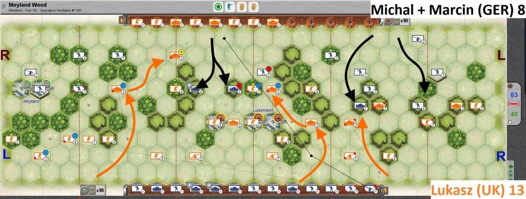 The game was closer than the final result might suggest. The German failure to take Lusendorf was a critical factor, also Lukasz decision to bypass Moyland Wood had large influence on British successes. Final result:
