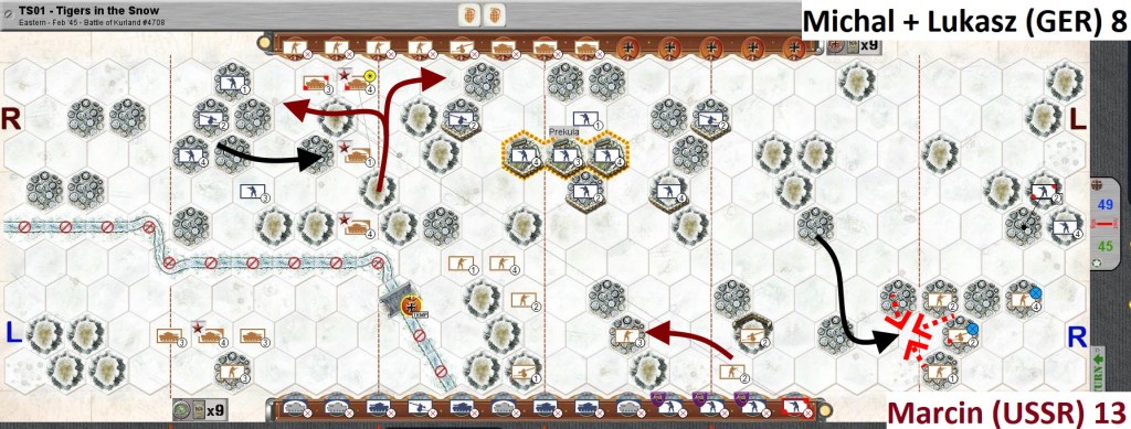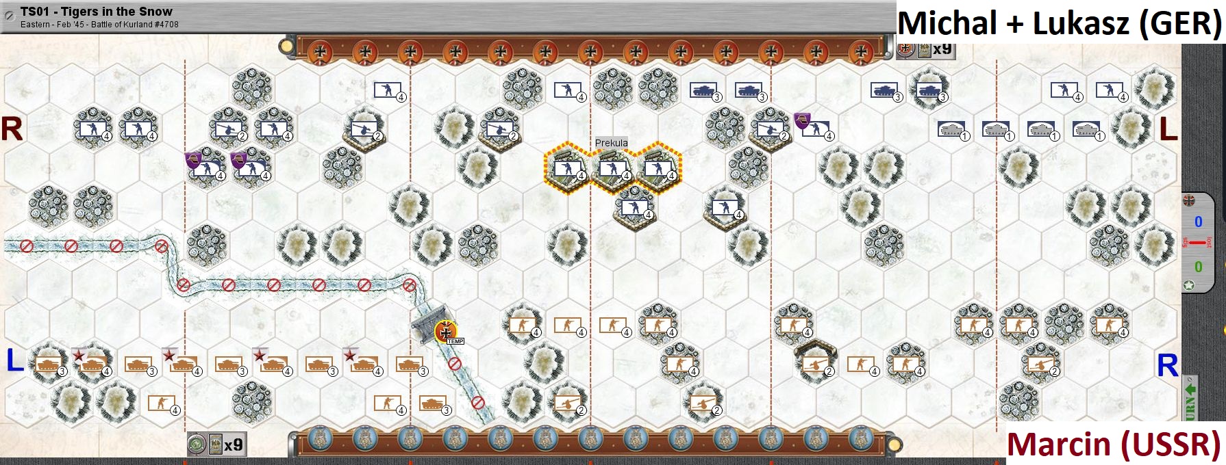This scenario was almost like two separate battles. On one hand the German tanks, including Tigers, trying to root-out Soviets from woods on their right; on the other – juggernaut Soviet Army crossing the frozen river and outflanking Prekula. Still, it ended just like history wrote it: