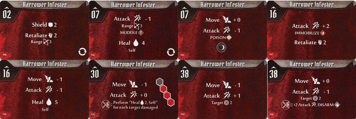 On the first glance a small enemy which might seems as an insignificant. On the other hand, pretty versatile monster, with ability to Poison, Curse or Muddle you, plus Strengthen or Heal his allies. And reasonably quickly – from Level 3 – you get Disadvantage whenever you attack it!