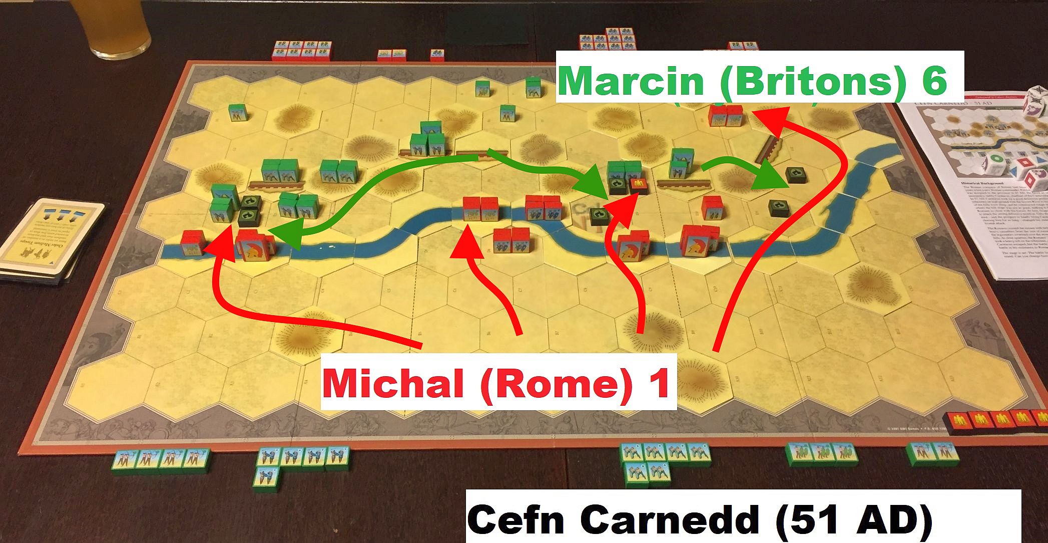 It was a very hard scenario for me and what is more – Marcin played perfectly. Having good cards like Line Command my troops quickly progressed forward but were meet (Darekn the Sky) with volley after volley of barbarian javelins and arrows. I managed to break the resistance on the right but Britons were perfect in rotating their units – as you can see above, Marcin had 4 (!) one-block units at the end of game.
