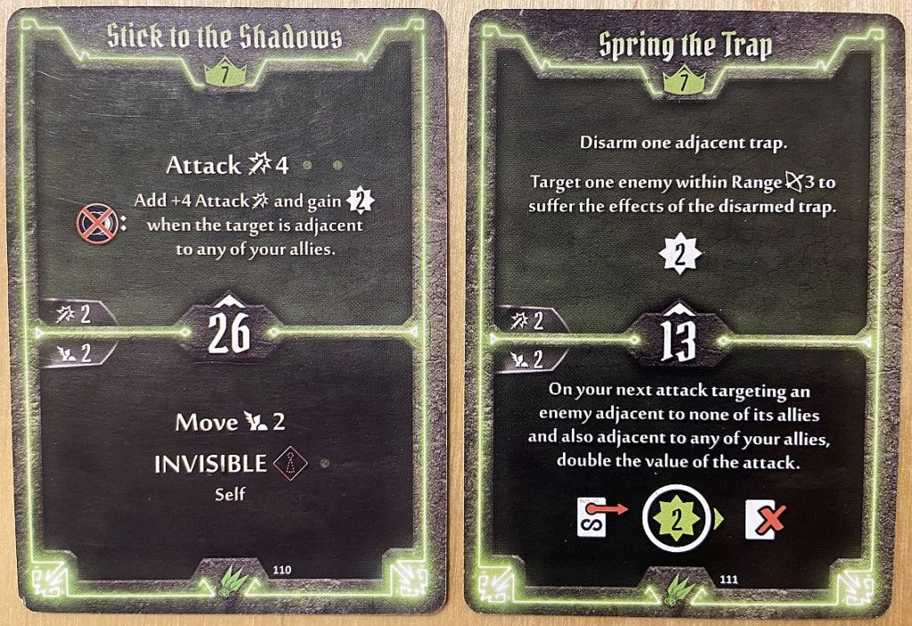 - Level 7 – I took Stick to the Shadows over Spring the Trap card; the choice is pretty obvious – disarming traps is not what we do – we use them as landing spot for enemies 🙂 And that move with invisible is simply fantastic for melee Scoundrel – it will save your skin many times. Attack 4 is decent, and when you have Mindthief in group or Mana Potion it becomes fantastic 8 Attack! So no hesitation here.