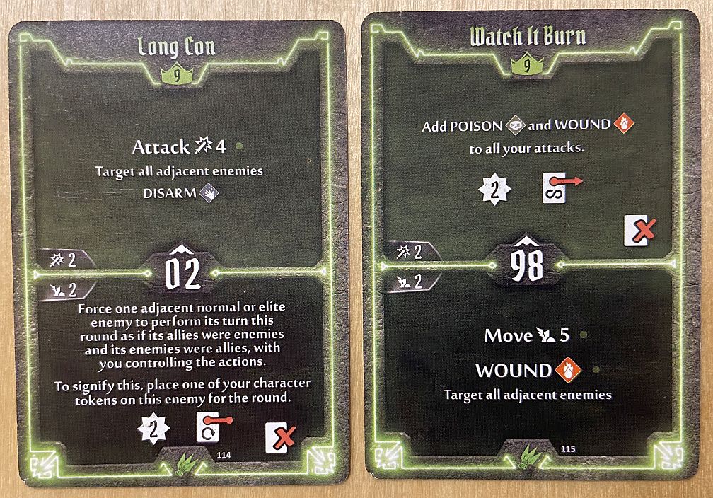 - Level 9 – I took Long Con over Watch it Burn. Both are really nice, but after Tripling Poison I do not have place for another lost card. And top of Long Con is quintessential type of action for Scoundrel – you charge into the group of enemies, attack and disarm all of them! Should they be poisoned – you unleash real carnage.