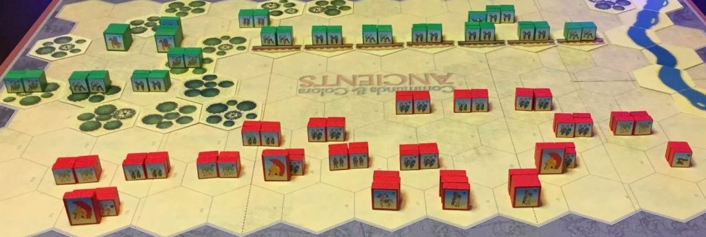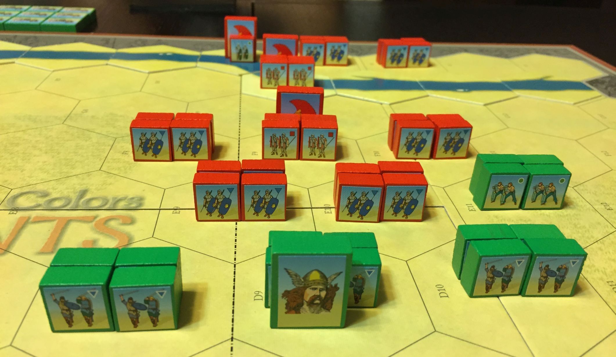 There is one more thing – the modernized Roman army (red blocks) and the various Barbarians (green blocks) looks simply fantastic on the battlefield. While previous installments were ok – I mean both Republican Rome (gray) vs Carthage (brown) or Grecee (blue) vs Persians (tan) – here we have real feast for eyes. It is not only great gaming experience but also aesthetic experience. Again, Highly recommended!