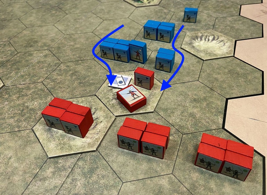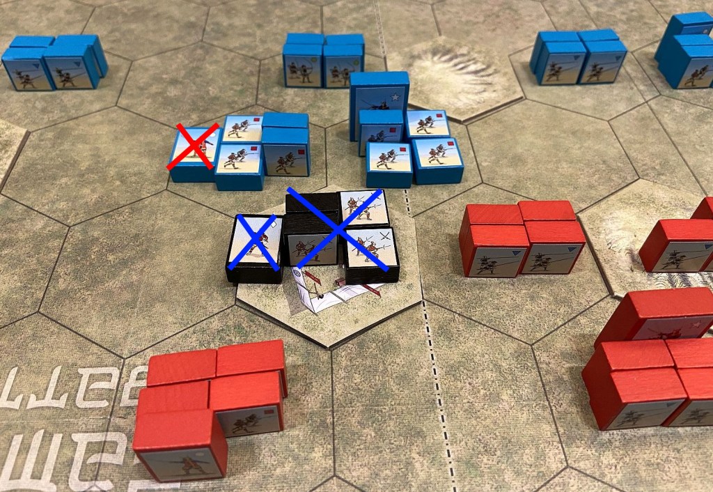 That was supposed to be a piece-of-cake for my forces but transformed into a very close engagement. Death of my leader who was defending the hills was critical here. Fortunately, in the end I managed to achieve historical result.