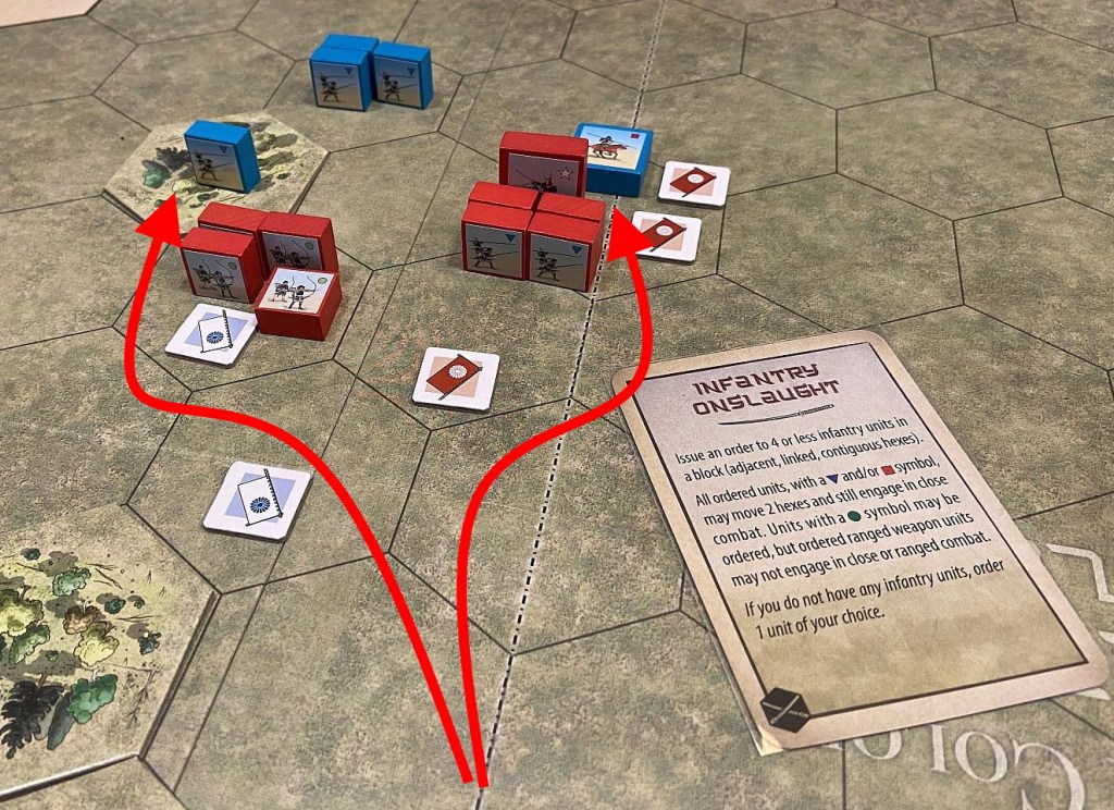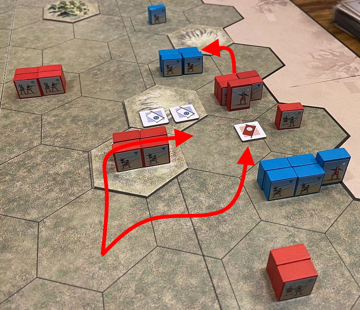 The game follows the well-proven mechanics of Commands (cards driving the moves and creating Fog of War) and Colors (the units designation, having huge impact on battle results). The dices allows us to quickly resolve all battles and the components in the box allow for creation of countless scenarios. In essence, Richard Borg at his best!