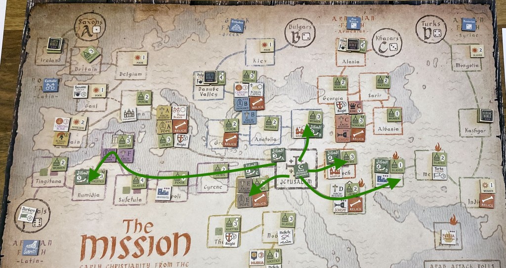 I am continuing to discover the great, small jewel which The Mission is. After playing the full, 27 turn campaign, I am trying now the much smaller but definitely more difficult 7-turn “Rise of Islam” scenario. But before plunging into the actual session report, let me provide some more information for those who does not know that game or only heard about it.