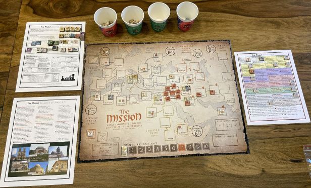 Let me start with more details about the last game I have chosen for the Top 3 – I will help myself to great extent with the publisher description. The Mission: Early Christianity from the Crucifixion to the Crusades is a “grand strategy” solitaire game covering 1,200 years of Christian history on a map of the ancient Mediterranean, Near East, Europe and Africa. While the secular world of empires and politics plays out around you, your missionaries spread the Christian faith and convert areas of the map to your new religion. Each turn covers decades, and the flow of play will teach players about the expansion and doctrinal battles of early Christianity while you build institutions to educate, heal, and inspire the societies you touch.