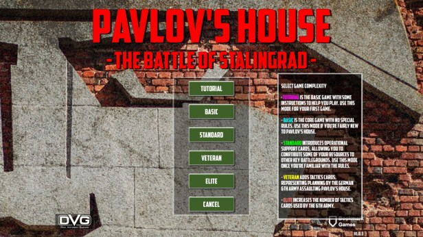 - strategic perspective – on the right side of the board is a depiction of the Volga River and operational-level elements of the Soviet 62nd Army, which were critical in the defense of Pavlov’s House.