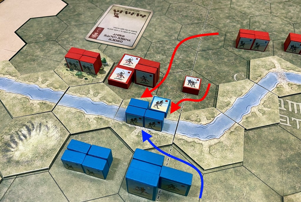 In early September, Motonari sent a small group of Ashigaru across the Tajii to provoke the Amako into attacking. When the Amako troops came out to drive them back, the Ashigaru fled back across the river to the safety of the castle. The Mori force that was waiting in Ambush, then took the Amako soldiers by surprise in their flank. The Amako were immediately routed and fled back to their camp.