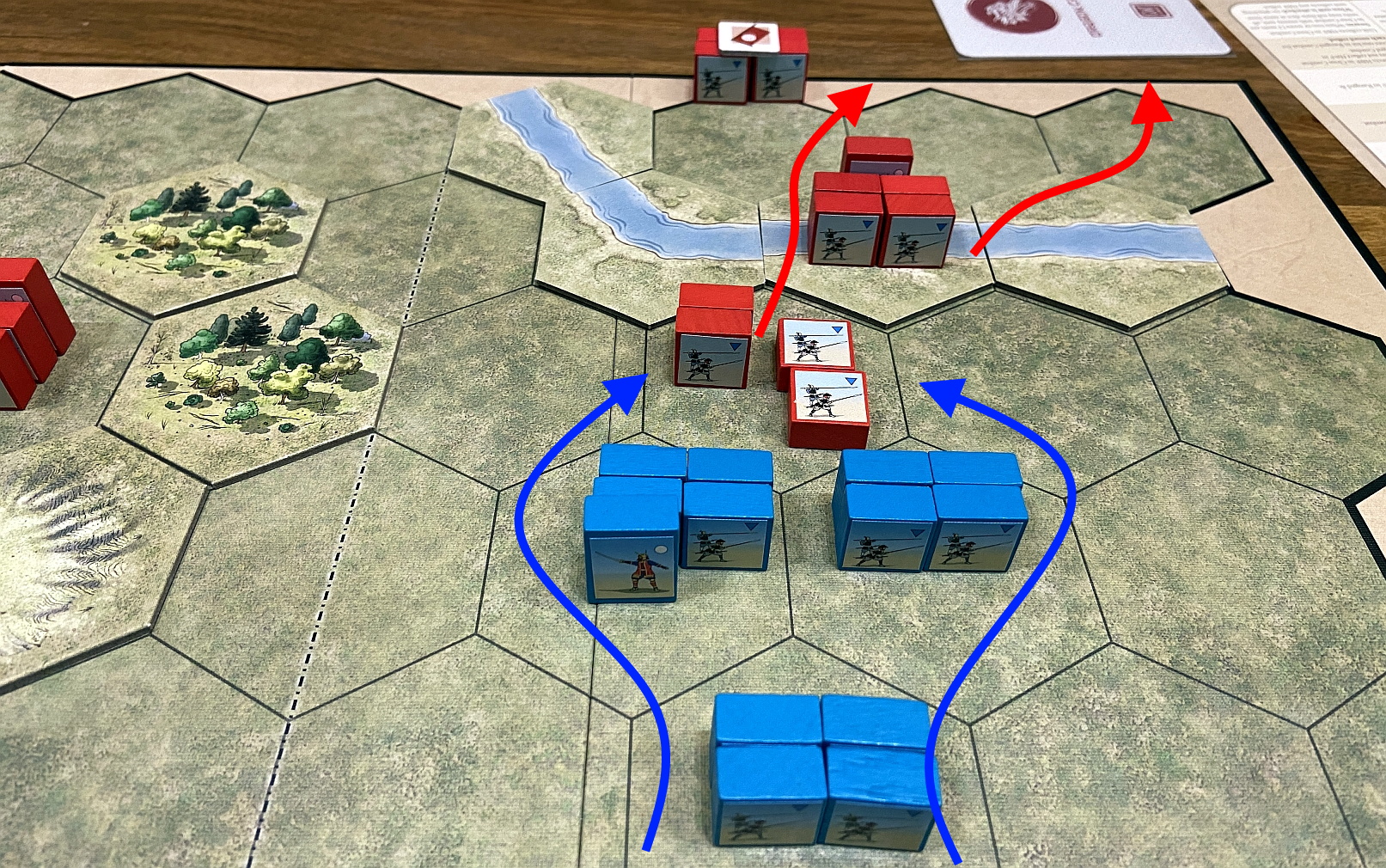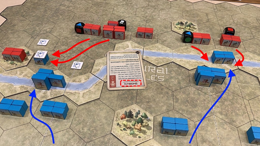 We started from Enokawu River – my attacking forces will be trying to cross the stream and score VP for each unit which survives there till start of the its turn. Lukasz will lead a desperate defense.