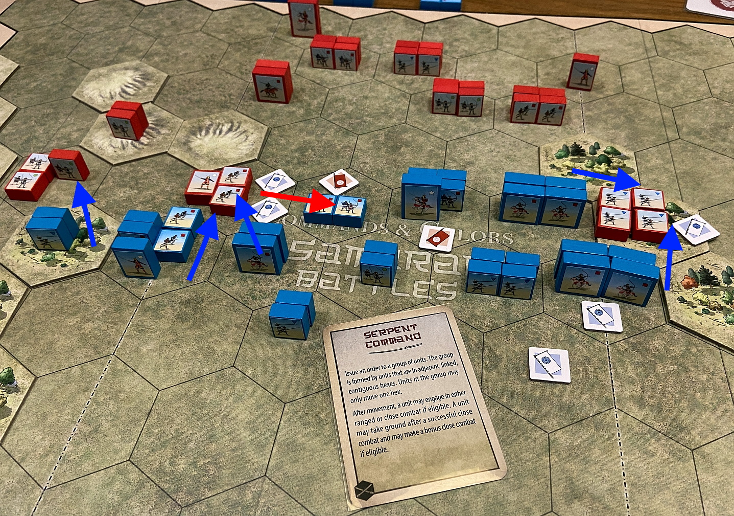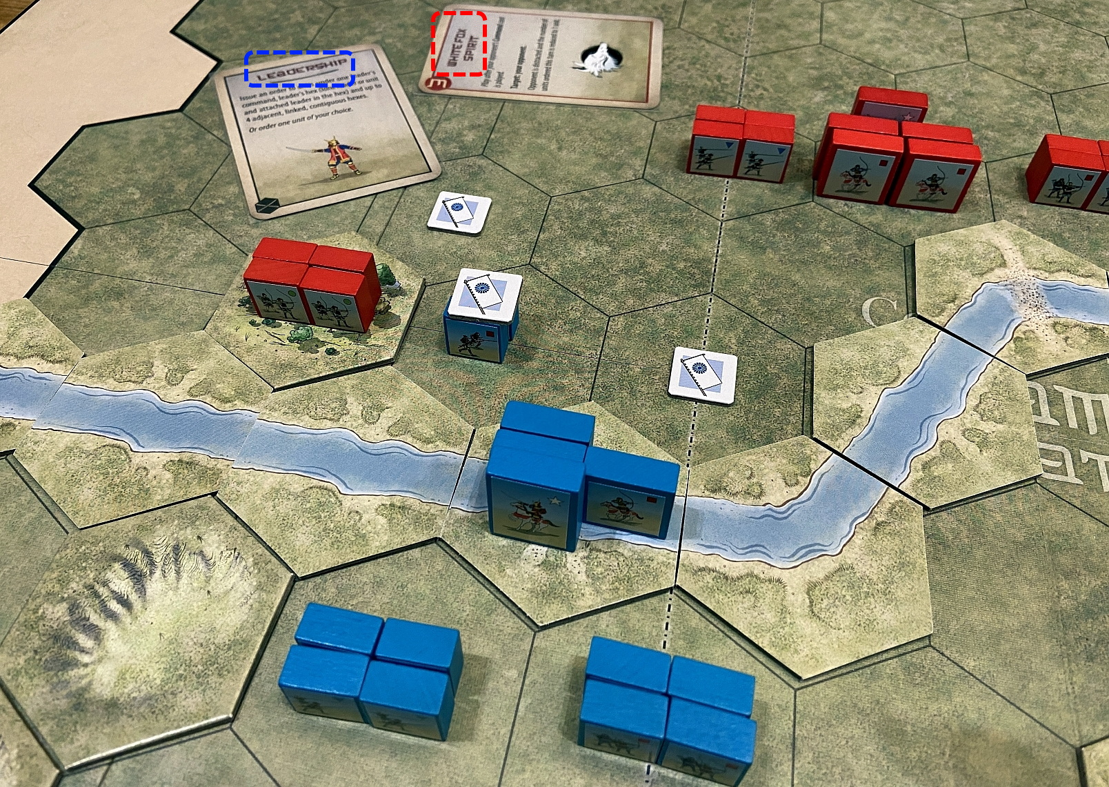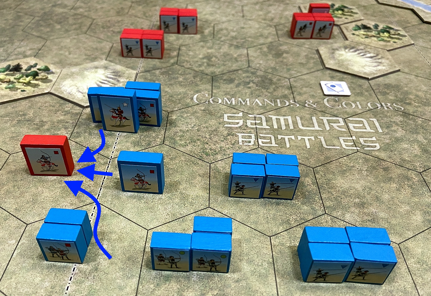 The Commands & Colors: Samurai Battles game allow players to portray important engagements of Japanese history mainly regarding the XVI century. The battles, included in the thick scenario booklet, focus on the historical deployment of forces and important terrain features in level with the game system. The scale of the game is flexible and varies from battle to battle. For some scenarios, an infantry unit may represent an entire clan of soldiers, while in other scenarios a unit may represent just a few brave warriors.