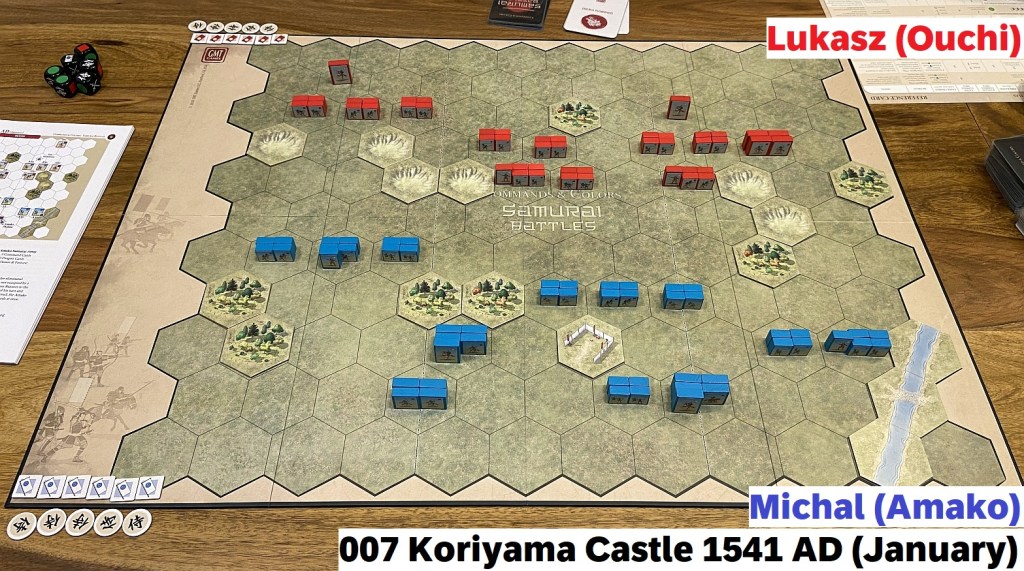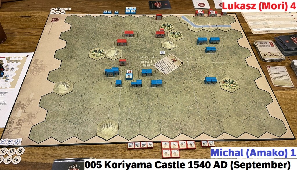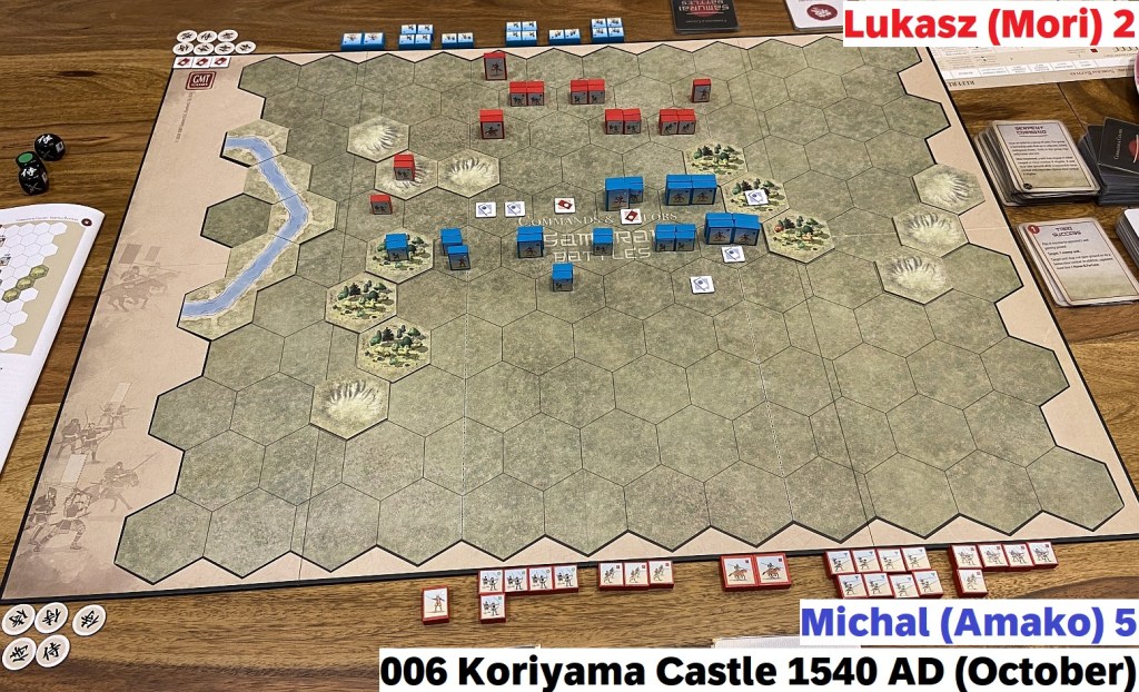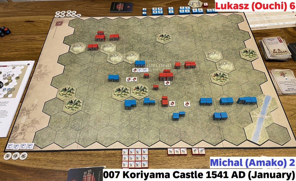 The Samurai Battles hit the table third weekend in a row – of course, alongside with other titles. That should tell you enough how much I appreciate that newest installment to C&C series. Today I will focus on another multi-scenario, mini-campaign session reports (after Arita Castle 1517 AD & Okehazama 1560 AD) – Koriyama Castle 1540 AD. But pretty soon you can count on my First Impression article. I am pondering also an essay comparing this game to its closest C&C titles: Ancients and Medieval. A lot of plans which I hope to realize soon!