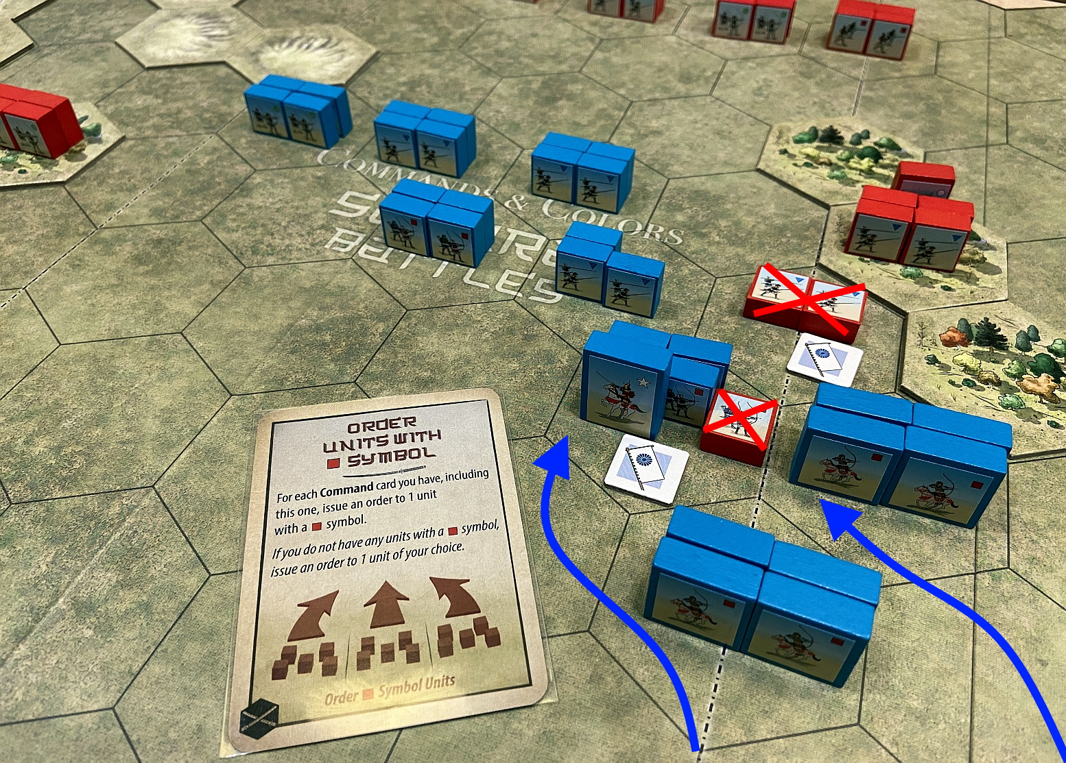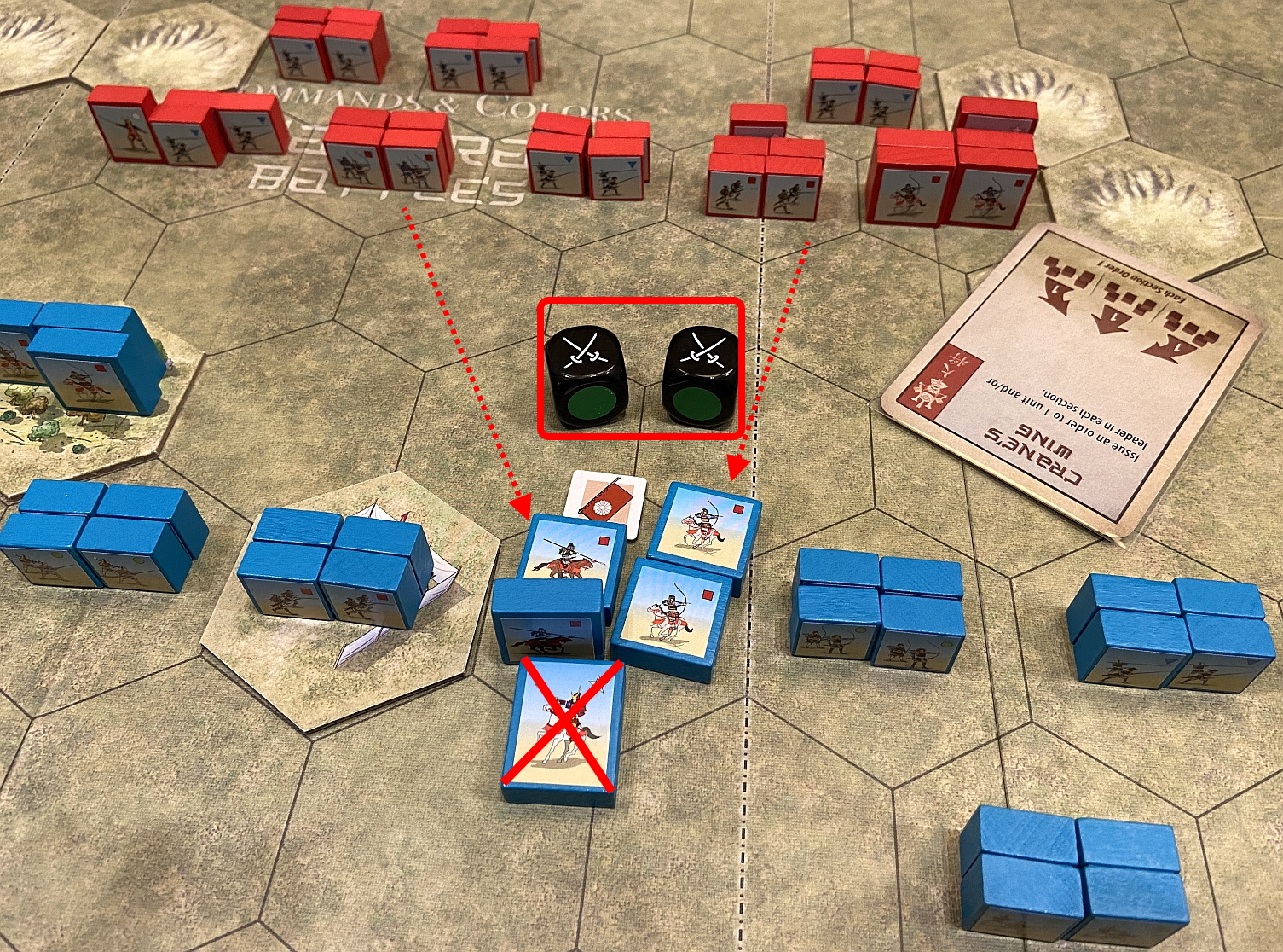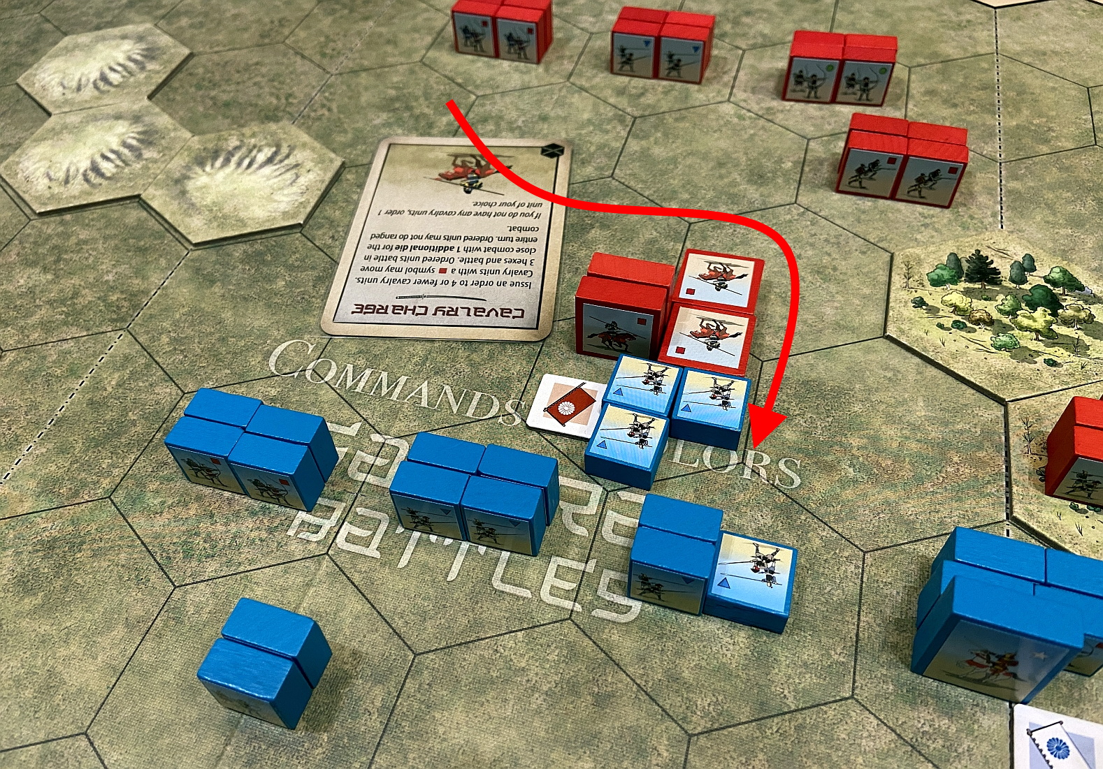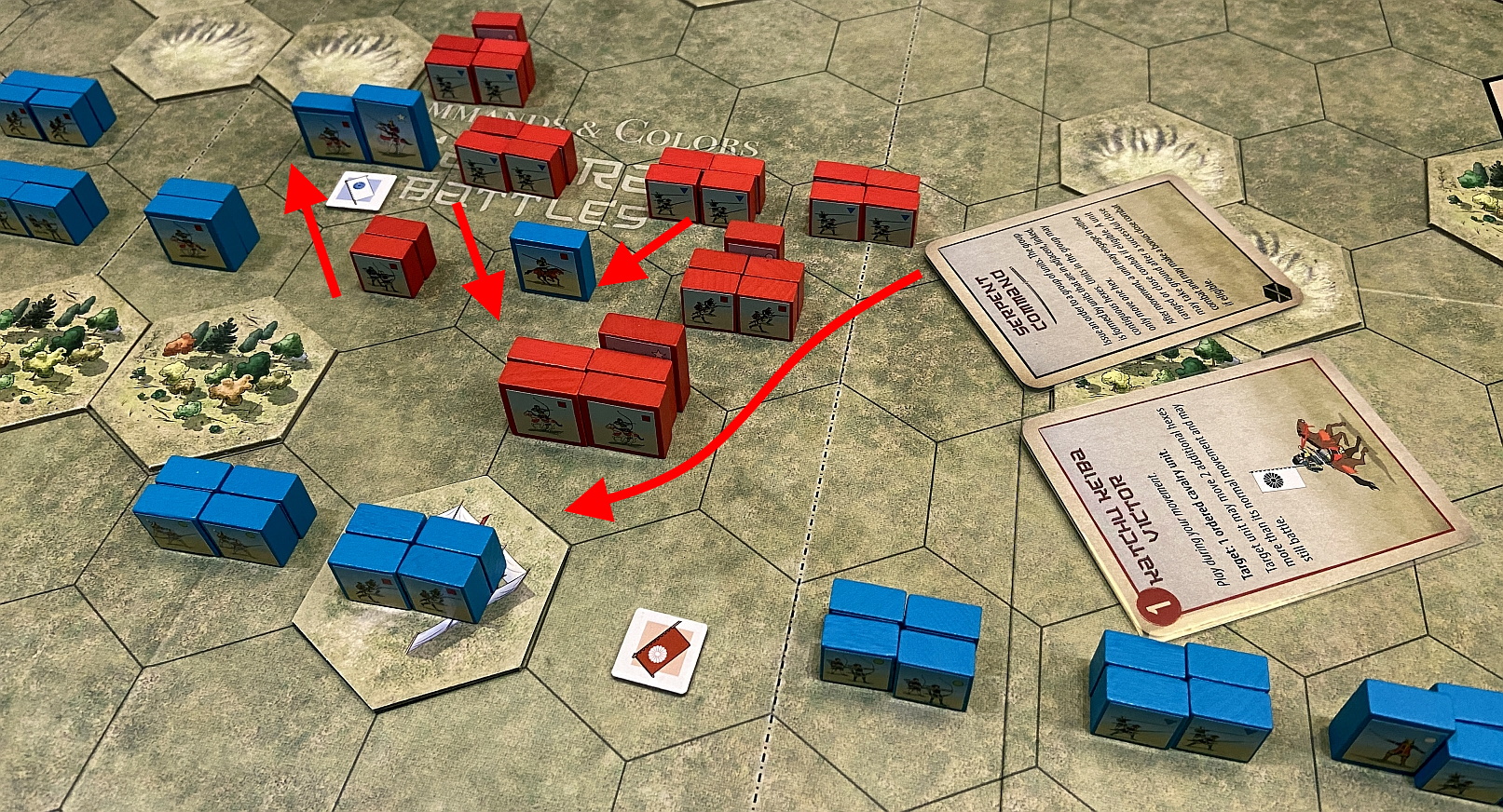 The game follows the well-proven mechanics of Commands (cards driving the moves and creating Fog of War) and Colors (the units designation, having huge impact on battle results). The dices allows us to quickly resolve all battles and the components in the box allow for creation of countless scenarios. In essence, Richard Borg at his best!