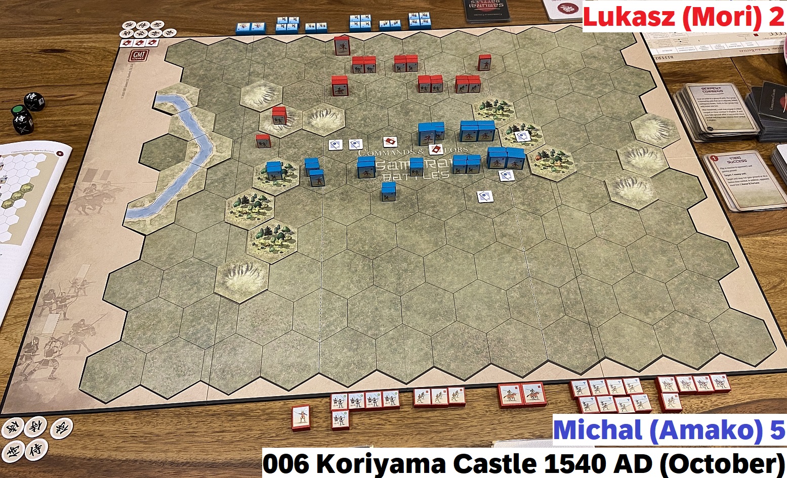 The final score was a draw: Michal (Amako) 13 – Lukasz (Mori) 13, which seems pretty fair. Both sides had its moment of glory, both bloodied opponent – and themselves – significantly. That of course also means that invasion failed and Mori managed to repeal the attack.