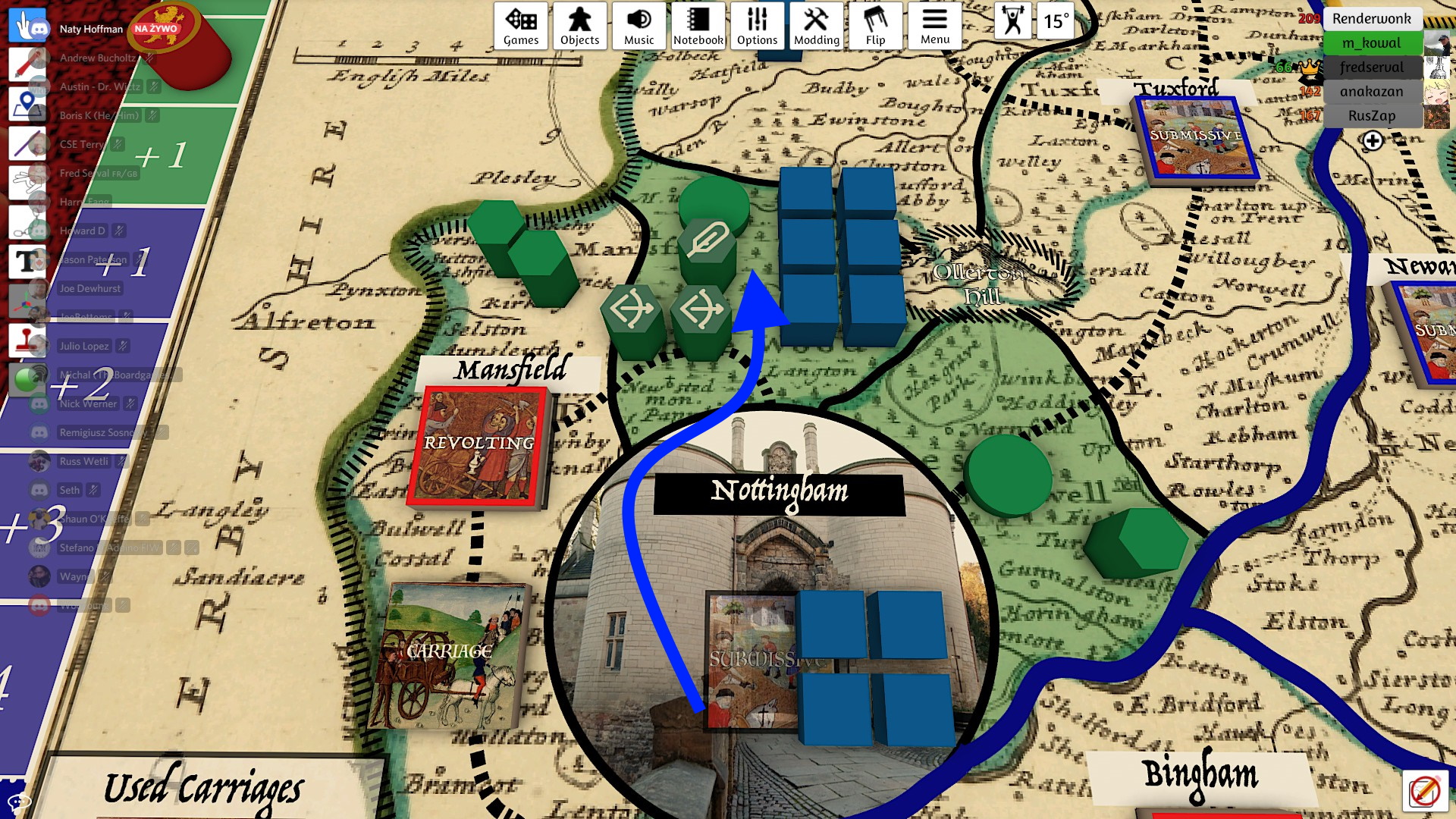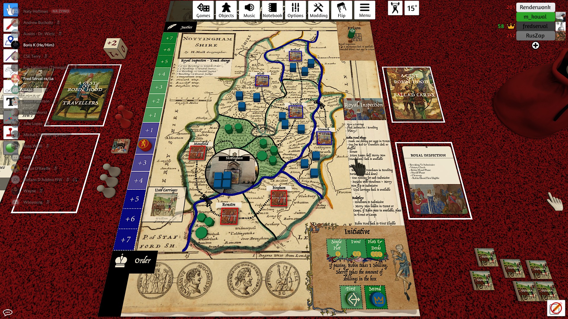 The game is played on the 12th century Nottingham Shire map. In essence we have two factions: