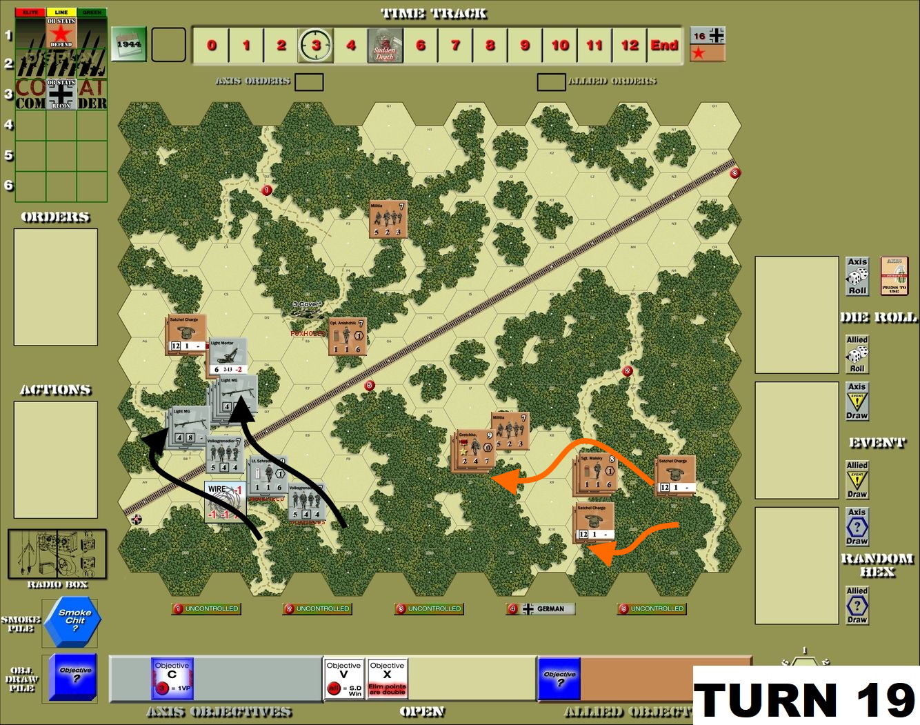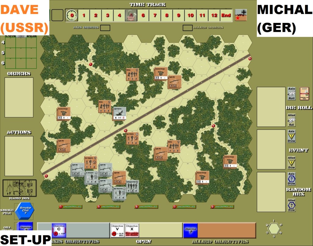 Unbelievable, but this was already 7th Combat Commander Europe scenario we played with Dave since January. Recently we added – to our daily routine of exchanging the game log files via Discord – one live session per week. It is not easy to find a slot as there is 9 hours difference between Poland end West Canada. Still, thanks to Dave sacrificing one lunch hour we managed to enrich our gaming experience with this online session.