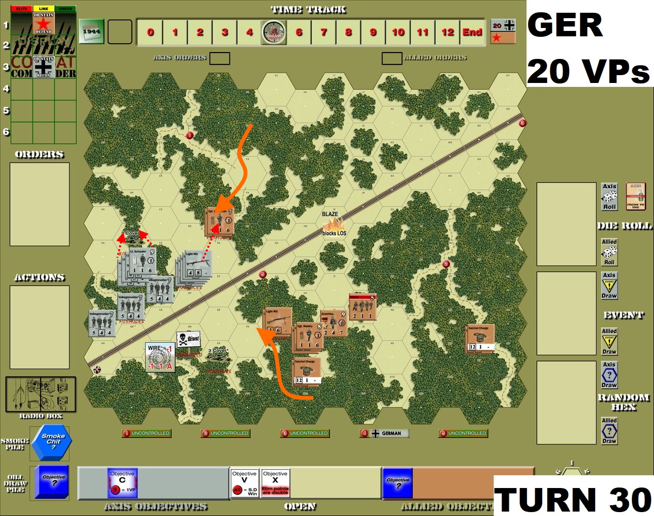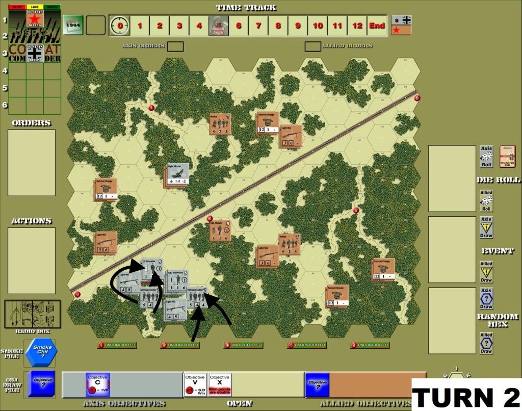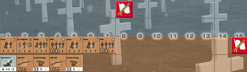 While the scenario has great replayability factor due to its random set-up, it has to be taken lightly, as the randomness might put Soviets in pretty disastrous position. This was exactly what happened here, with two units (including leader) killed almost instantly. The Germans kept together, maintaining high firepower and when endangered by advancing enemy – moved to new positions.