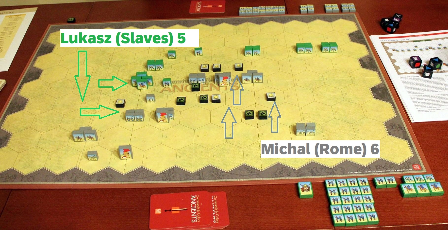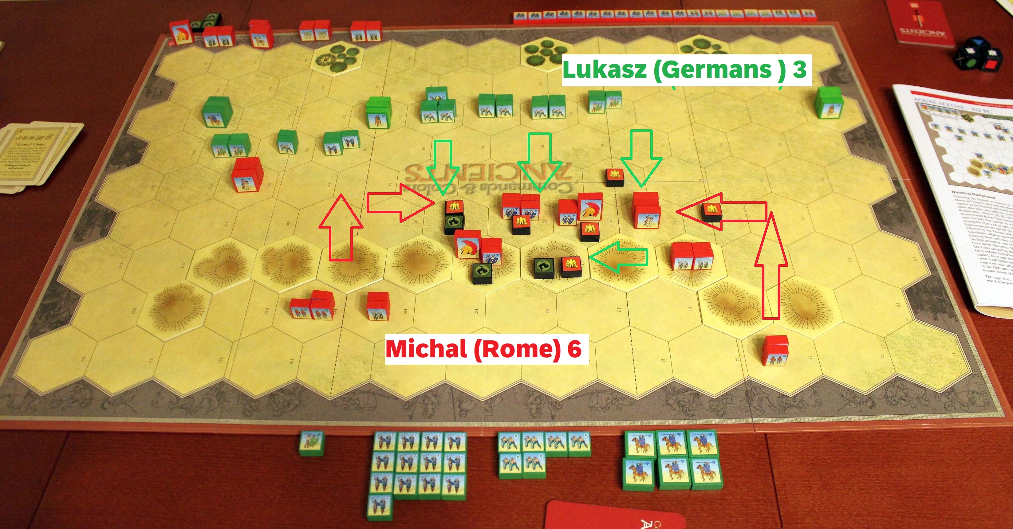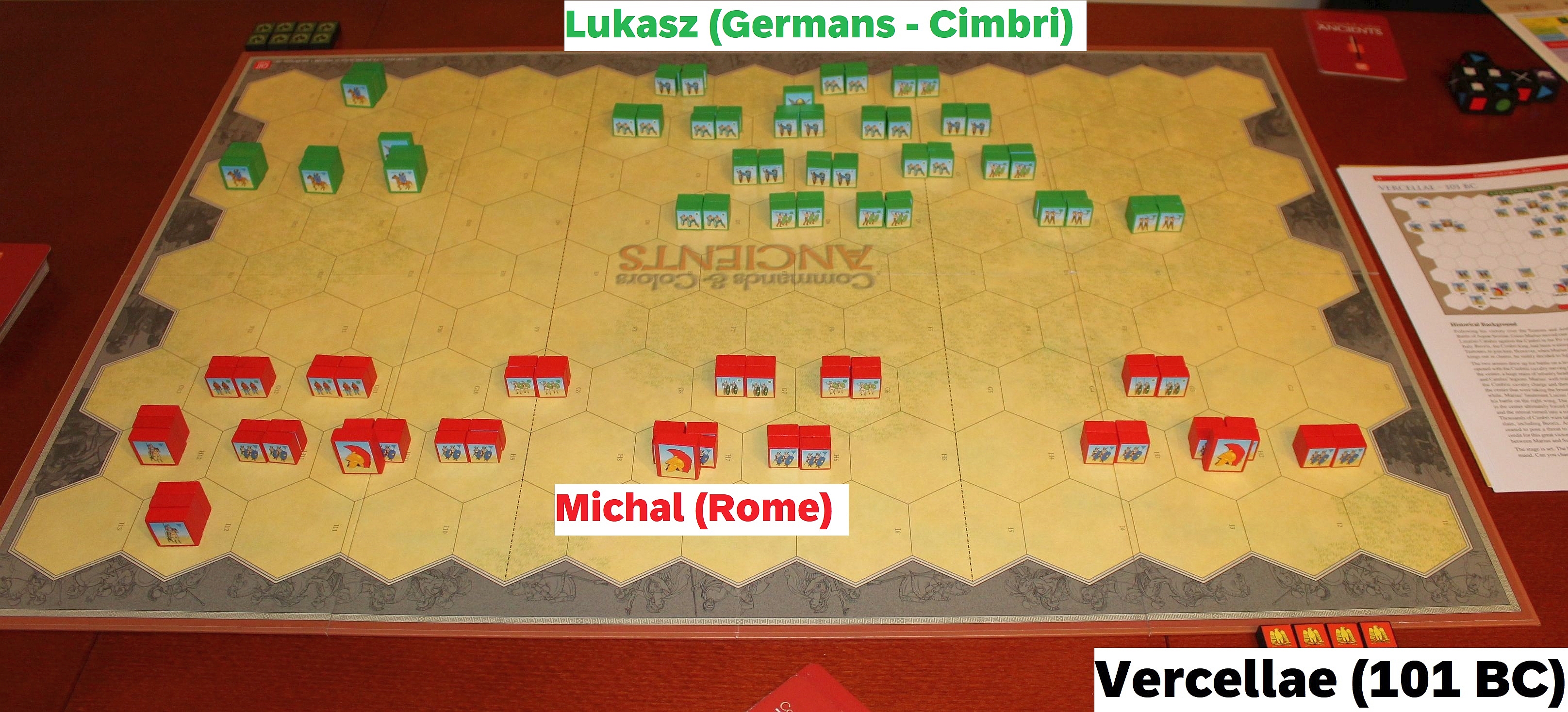We started with Arausio – the decision was I would lead Romans through all scenarios while Lukasz would be responsible for Germanic tribes. When you look above, the forces seems similar – but be not mislead! I had only 4 Command Cards while Lukasz had full set of 6 Commands at his disposal.