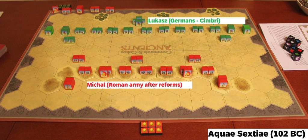 One more Commands and Colors evening and another mini-campaign played! The idea was to bring to the table C&C Ancient scenarios featuring the Romans battles against migrating Germanic tribes at the end of the 2nd century BC. The prominent figures – Gaius Marius & Lucius Cornelius Sulla – had a tremendous impact on the Roman army development during that time and move from maniple to cohort system. A lot of other improvements were also implemented – like pilum or broadening the pool of recruits – which transformed that unit into the best fighting force of the time.