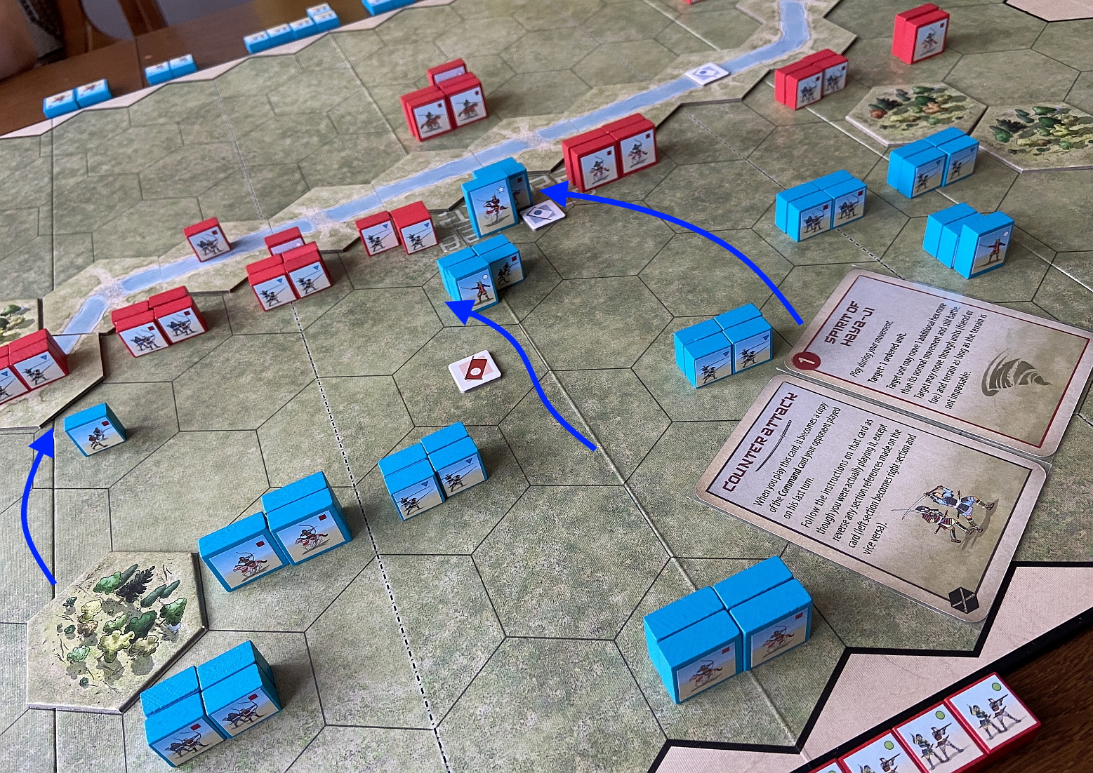 The Commands Colors Samurai Battles by GMT Games is definitely very good, logical continuation of those light wargames family. It is beautiful game – a vivid red and blue blocks looks fantastic on the pastel board, it has already 40 scenarios in base game, it features two card decks and allows for a really close and enjoyable plays!