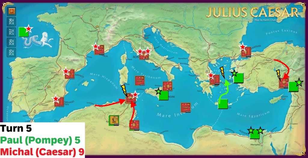 Couple of more words about that product should you not know it. Julius Caesar is a game driven by cards, but much fewer types than for example in C&C Ancients. The map shows whole Mediterranean area and the historical topic is very attractive – Civil War between Julius Caesar and Pompey the Great. As you can see, this is another fantastic depiction of that conflict in my top 3 list.