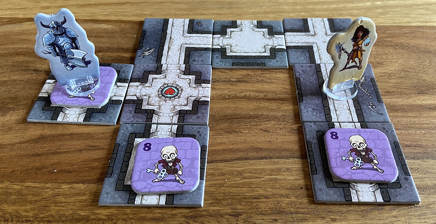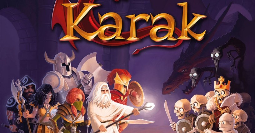 In Karak, also known as Catacombs of Karak, each player leads one of six different characters into the labyrinth. Tile by tile, they uncover what the labyrinth looks like, and it will differ on each play-through. They have to equip themselves with weapons and spells, fight monsters, and (most importantly) collect treasure. The player with the most treasure at the end of the game wins — a true champion of Karak! The game end when the Dragon is defeated, but that does not mean that character who performed that feat will win the game…