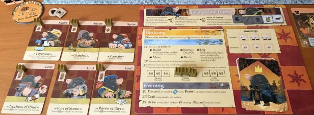 - The Great Underground Duchy: an imperial faction that mixes the flexibility of the Marquise with the escalating Eyrie Dynasties. We really needed it – not a nimble faction with special abilities, but a head-on, area control and war-liking animals pack which can stand up to the Marquise or Eyrie warriors.