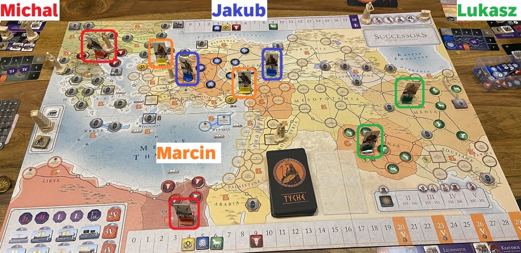Time to play Successors 4th edition from Phalanx even more. I have already brought to the table 2-player scenario as well as did the demonstration of the game for 3 factions. Now, the time has come to have as many as 4 players trying to divide the spoils after Alexander the Great. Me, Jakub, Lukasz and Marcin decided to take on the challenge!