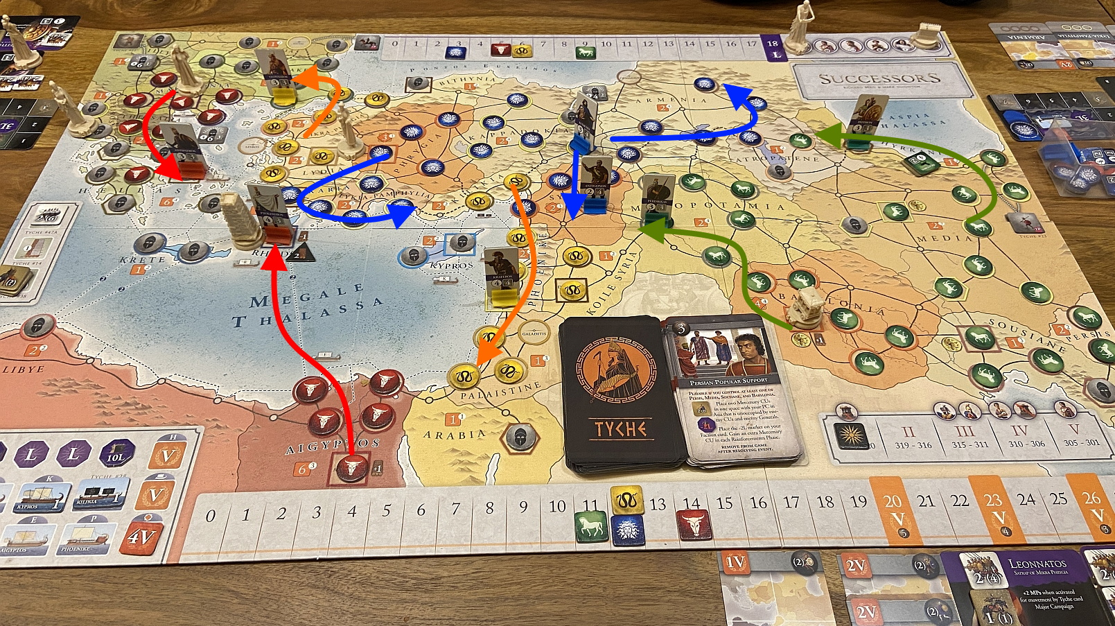 - Once again, I have to underline it is a very thematic game – even more with 4 than 2 players; oh, that grand clashes of not so long ago allies and now mortal enemies, Alexander legacy, heirs, etc. As a fan of history I love to have a possibility to replay it and possibly alter.
