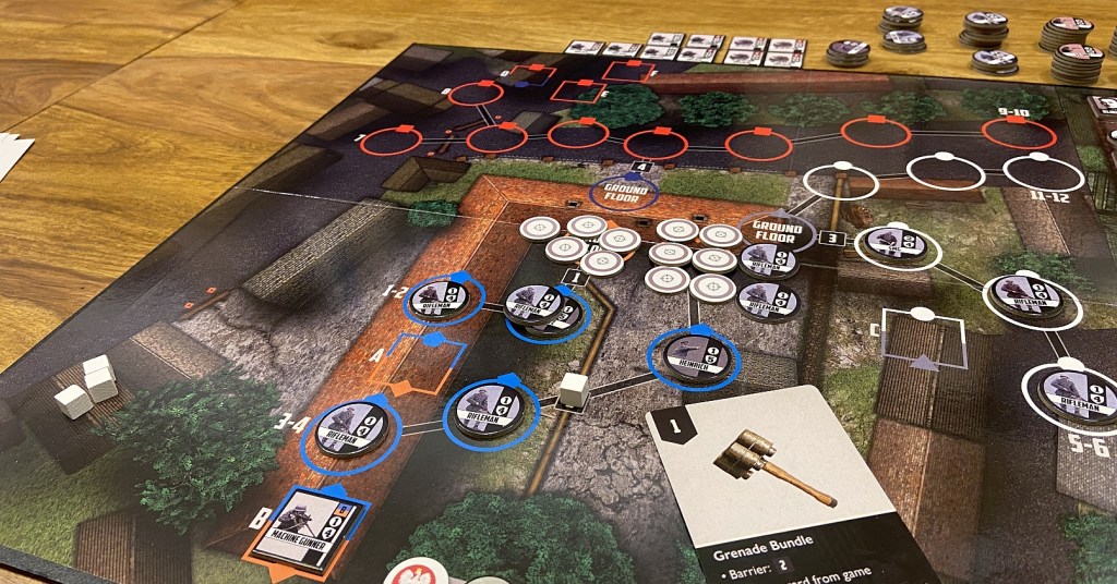 The goal of Soldiers in Postmen’s Uniforms is to recreate the incredible historic accomplishment of the Polish postal workers by defending the post office during the day-long siege. In the game, this is represented by playing through three decks of enemy cards