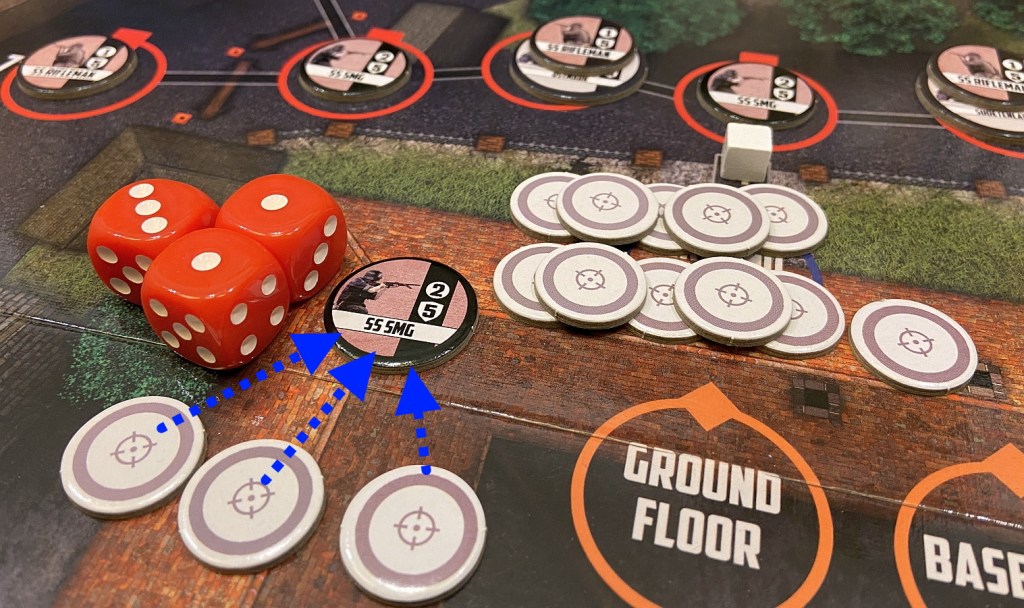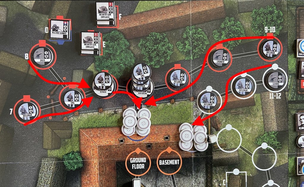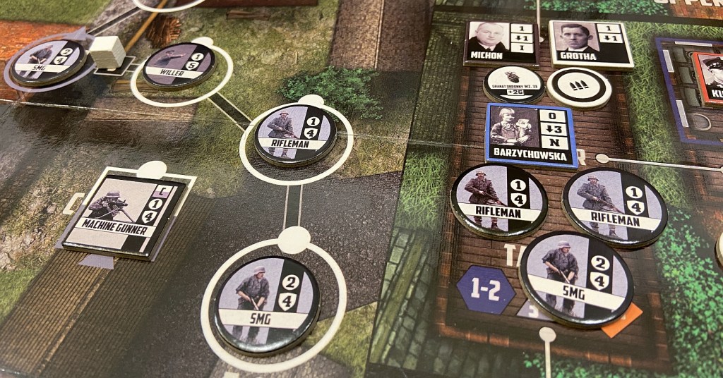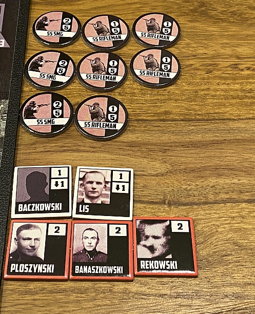 - Defender Phase – take four moves and then four actions with Defender counters. Among actions we have Attack, Suppress, Recover or Special Actions (Command and Escape).