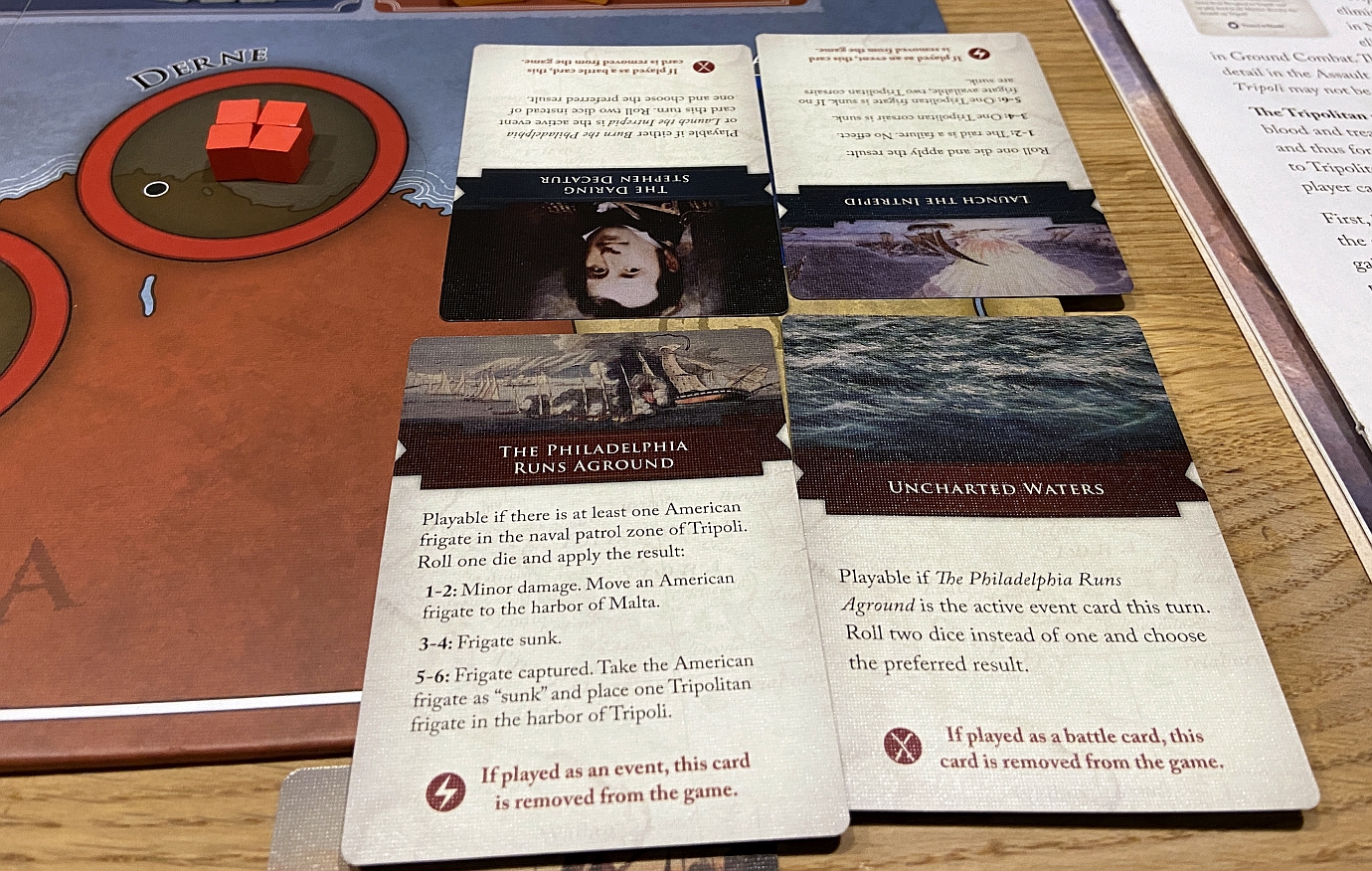 From the first time I heard about the game in 2019 I was intrigued by a completely new historical subject to me – I will be honest, I never knew that US was fighting on the Mediterranean to repeal the pirates and they were supported by Swedes – all this happening during the Napoleonic wars! What draw me to the game was also the asymmetry plus great Card Driven Game concept where you – throughout the game – have access to all of the cards but it is question when and how to use them.