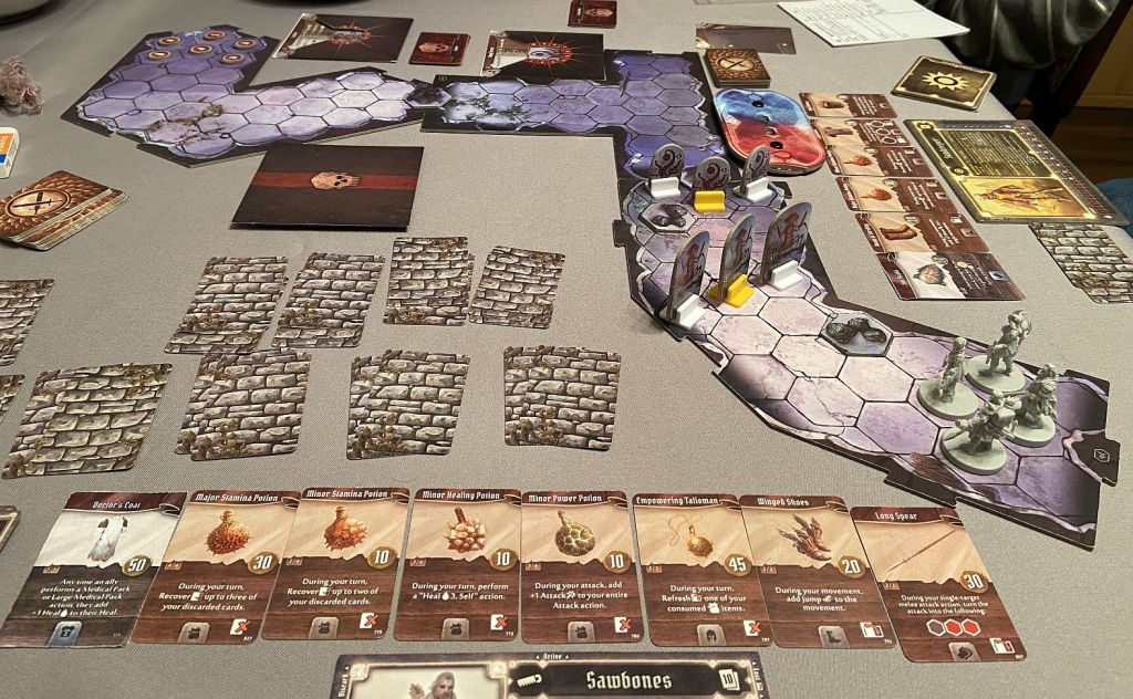 This time we played on Level Hard – it was a bigger challenge than in initial play with Dominik/Sunkeeper but again went relatively swiftly. We learn more and more how our characters interact: especially helping each other with buffs like Bless or Strengthen as well as super useful Medic Packs from Sawbone. That means that we shall increase the difficulty once again, to Very Hard. That might be too much as our next 3 scenarios will be against 3 bosses leading directly to our arch-enemy… We shall see! Stay tuned!