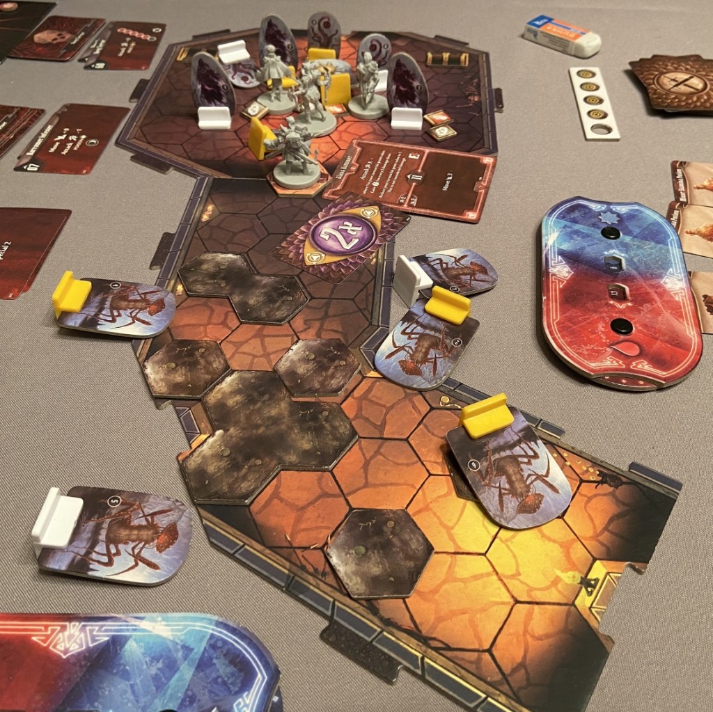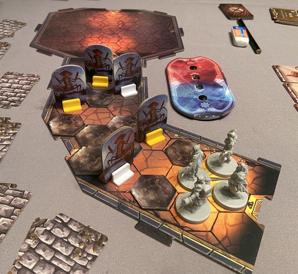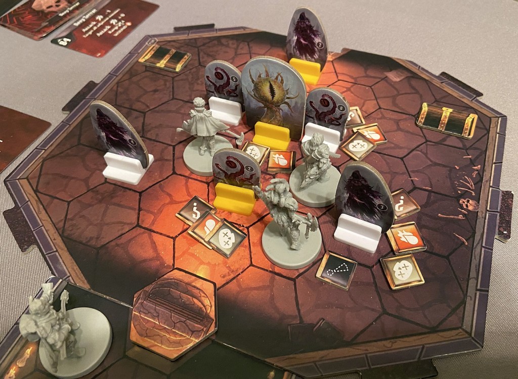 We are joking in our Gloomhaven group that this game has 3 semifinals 🙂 We tackled already #48 Shadow Weald and #46 Nightmare Peak – not necessarily chronologically, but that suited us, especially as we were bringing Dominik up to speed with those. Today – if things go right – we would complete the final one which will open the path to… End The Corruption!