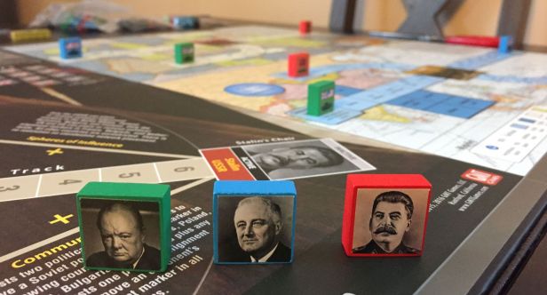 This is a game about “big three” – players take the roles of Churchill, Roosevelt, or Stalin and try to maneuver their allies into the best direction for them. Of course, while still defeating their enemies (Japan, Germany). In the end this is not a game “if” (the Allies will defeat Axis) but “who” (will rule the world after World War II).
