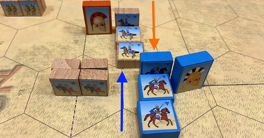 When Heavy and Medium units start to fight the dead falls in droves. In total 16 blocks killed on both sides with two more points for Eumenes!