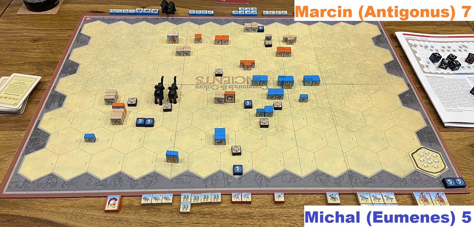 Final situation in our first scenario, with victory for Eumenes – although after initial successes I counted for more. That scenario is fantastic as always!
