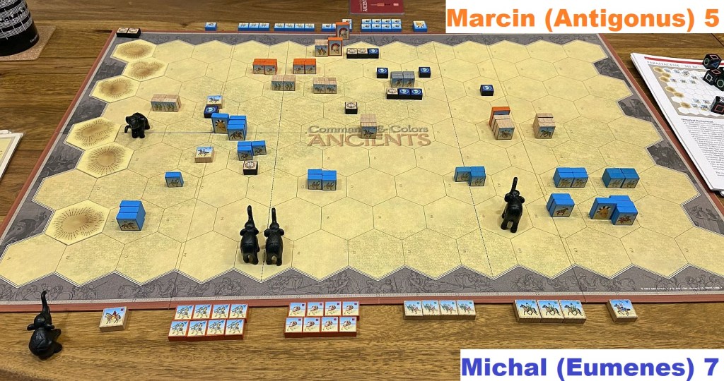 The game entered its decisive and mobile phase. Mounted charge gave Antigonus 3 VPs in one go.