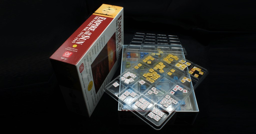 Empire of the Sun (EotS) is Mark Herman’s strategic level look at the entire War in the Pacific from the attack on Pearl Harbor until the surrender of Japan. EotS is the one of the Card Driven Games (CDG) which moves the system closer to a classic hexagon wargame, while retaining all of the tension and uncertainty people have come to expect from a CDG. Players will play roles of MacArthur, Yamamoto, Nimitz, or Mountbatten and direct their underlying forces across the breadth of the globe from India to Hawaii and from Alaska to Australia.