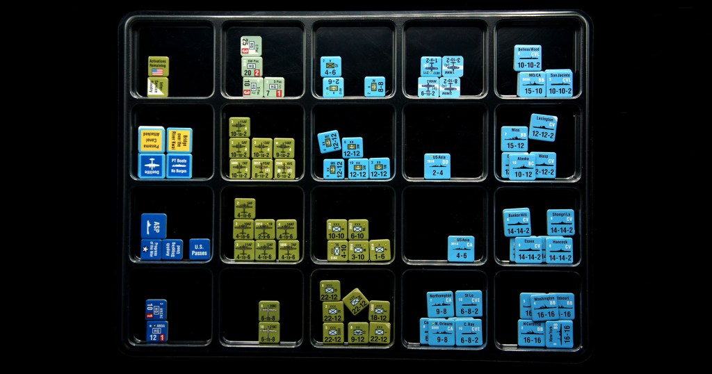 With all the Navy and Army counters on both sides, control and additional tokens, the set we propose allows for easy set-up of all the game scenarios.