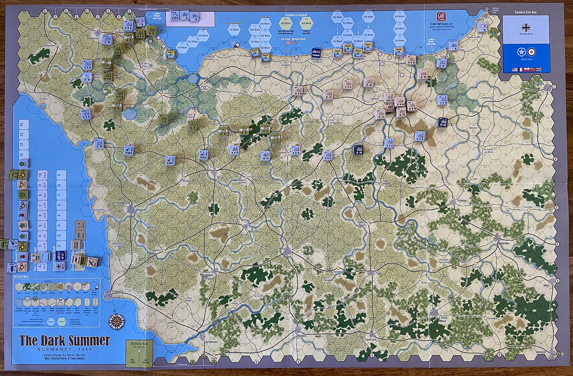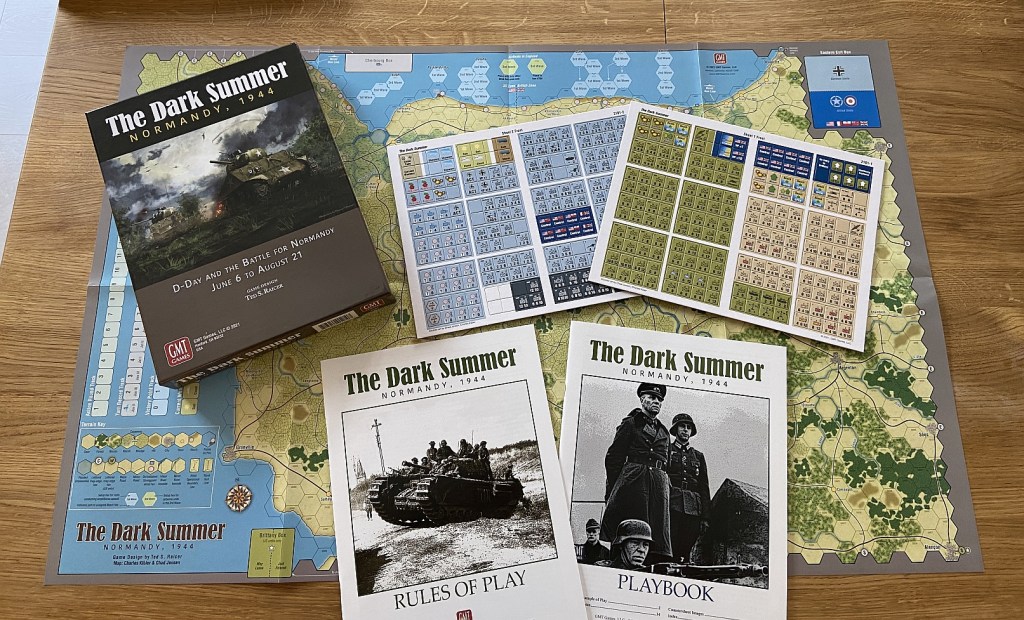 Yet one more great game in the “Dark” series. The Dark Summer: Normandy 1944 is the latest in Ted S. Raicer’s WWII operational series wargames. This title uses a chit-pull activation system (very much solo-friendly!) that determines both the order and type of each sides’ actions. The game last ten action-packed turns, covering June 6 to August 21, 1944.