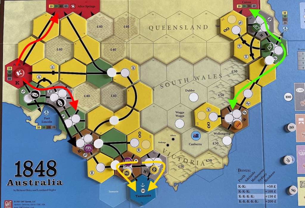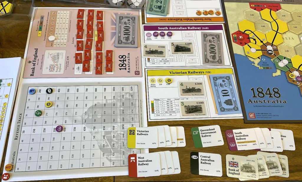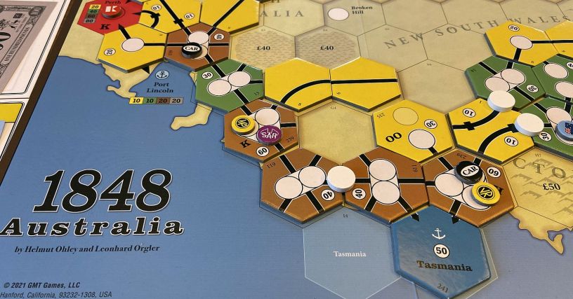 While I am first and foremost a wargamer, I like to play a good Economy themed game form time to time. And what would be a better title than one of the famous 18XX’s? I am slowly but steadily getting into this system, starting with 18MS (Mississippi) and 18Chesapeake. Now, thanks to the GMT generosity I am able to travel into Australia with 1848 and replay the first years of Railway there!