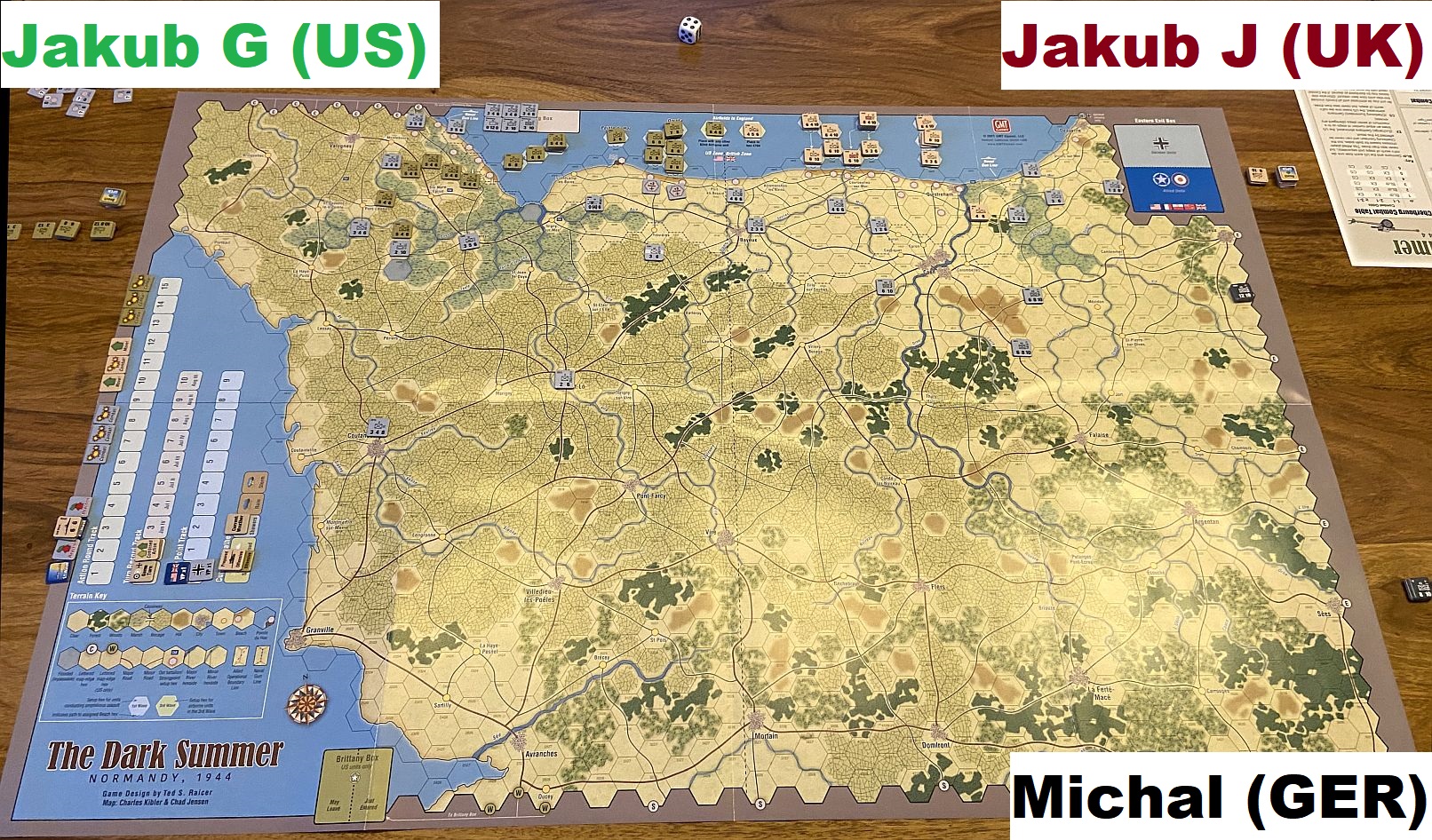 We decided that the game will be pretty suitable for three players, as I wanted to introduce both of my wargaming buddies – Kuba J and Kuba G – to this title. We decided to split Allied forces in two (US and British) while third person played as Germans: