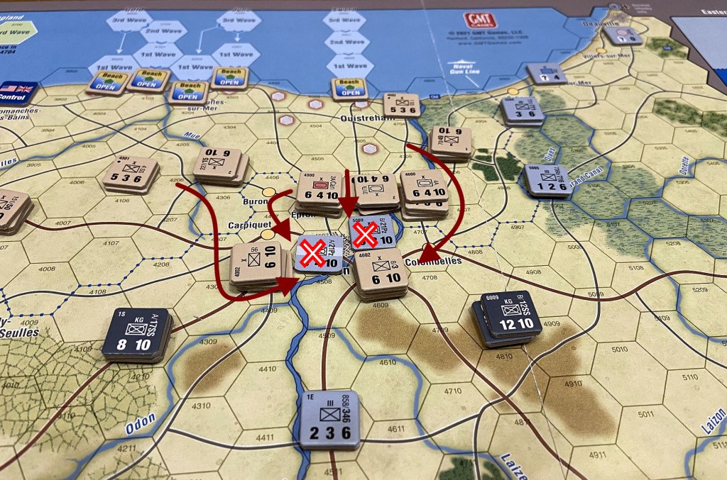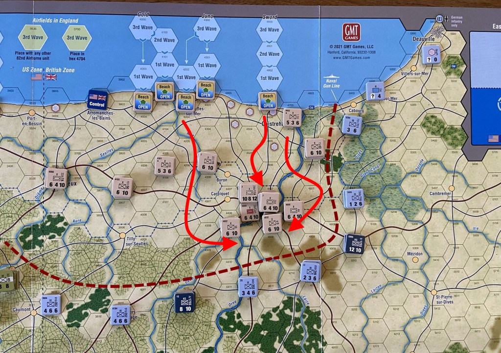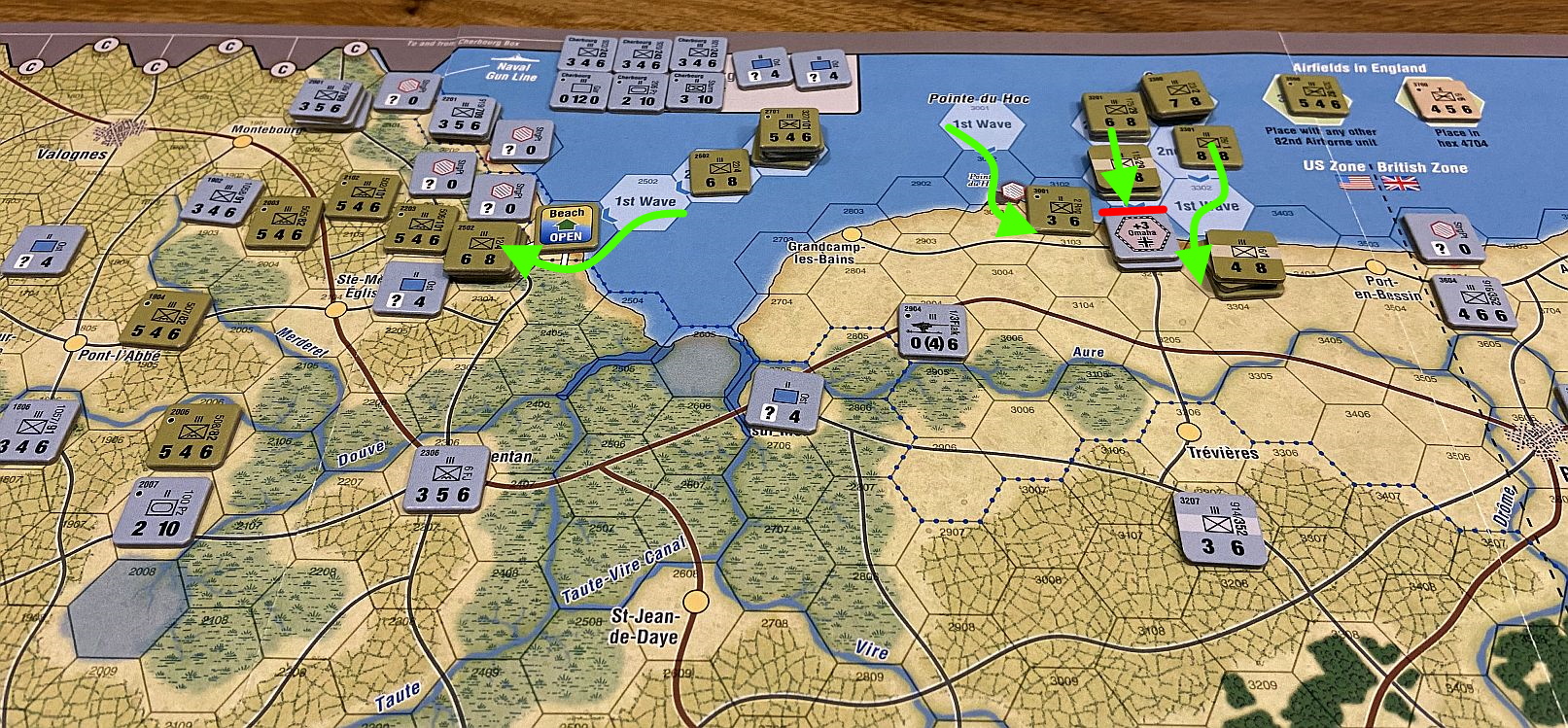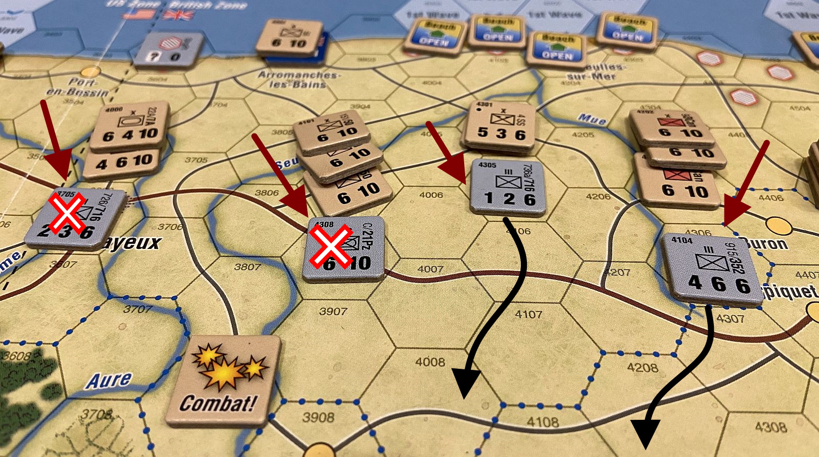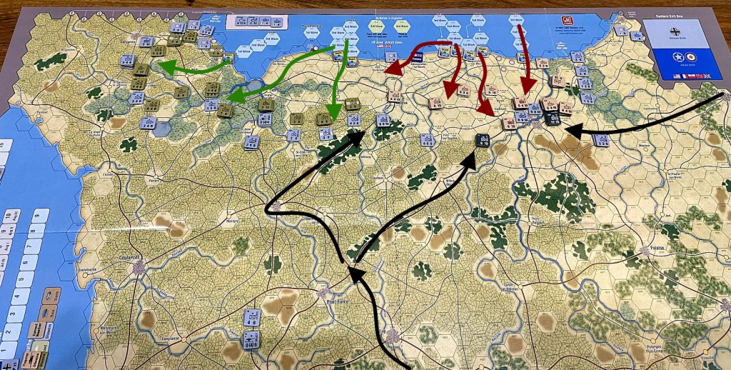 Victory is determined by the Allies capturing Cherbourg, exiting units to Brittany and Paris, and preventing the exiting of German units, but the Allies win a sudden death victory if they capture all the cities on the map before Turn 10 and the Germans win a sudden death victory by closing down any three Allied Beaches, two of which must be contiguous. The unknown activation sequence means the Allies cannot take the safety of his landing beaches for granted in June!