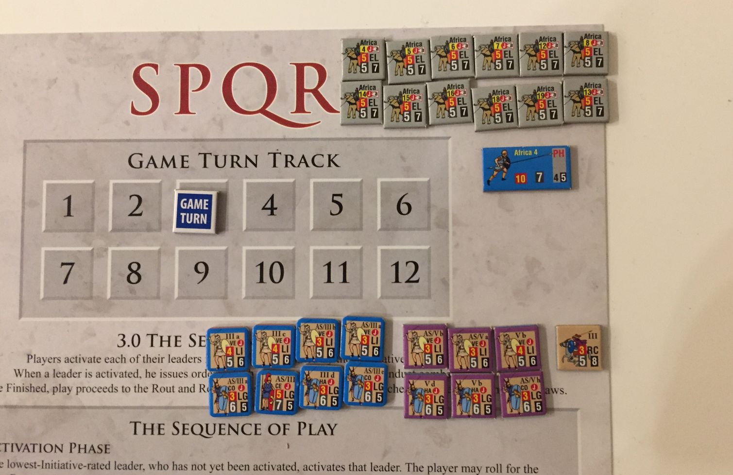| Playing time: | Many Great Battles of History (GHoH) volumes featured battles huge in size and complexity. The situation is similar with SPQR – although maybe not to the extent Alexander the Great Battles are depicted. That means that one scenario easily could take the whole afternoon. A few smaller engagements (there are such too!) can be played in more reasonable, 2-3 hours slot. |