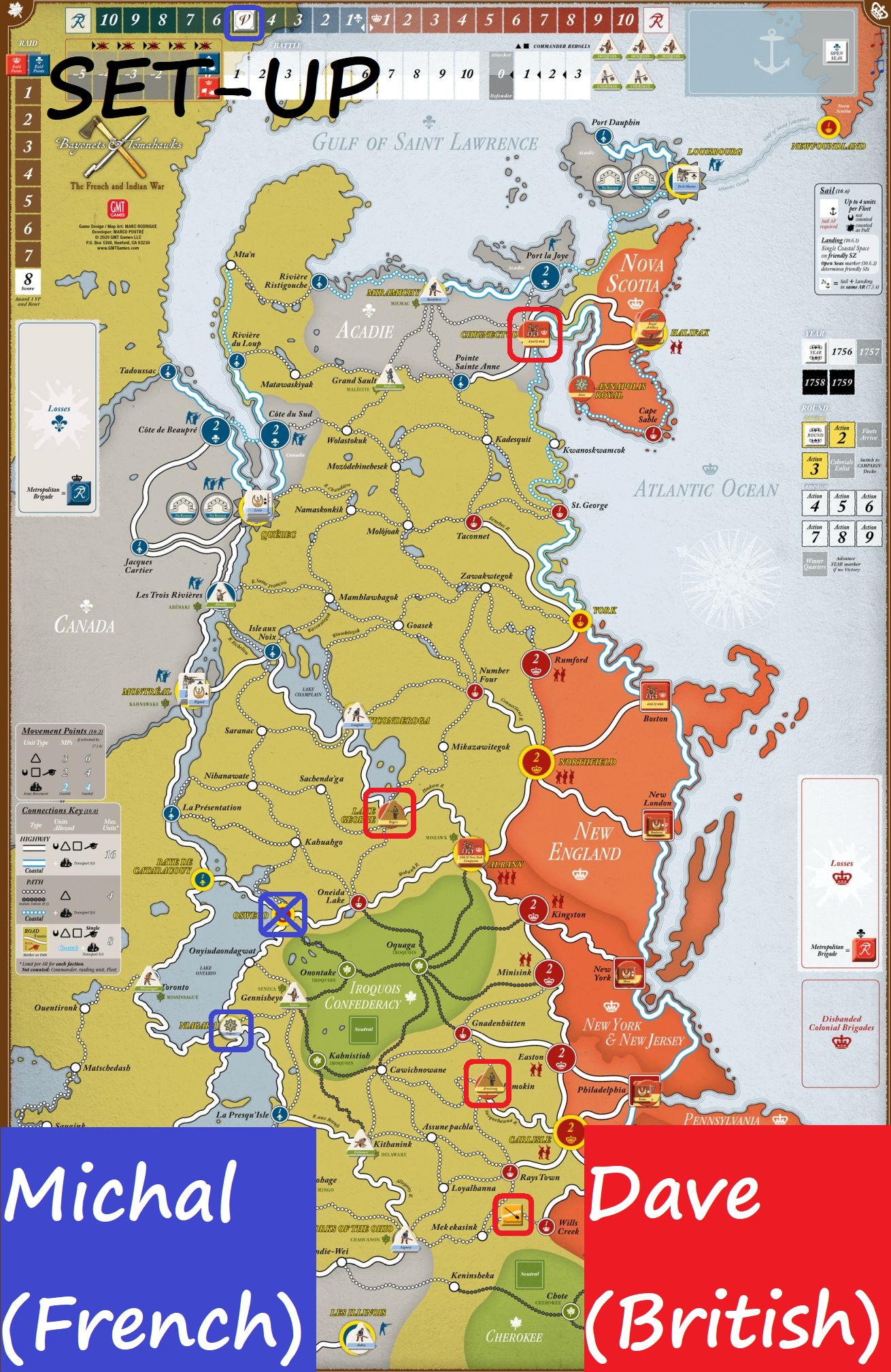 Well, despite overwhelming British advantage in troops, it is not as easy to tackle the fort spaces – which Dave painfully learned. The raids allowed French to keep afloat which combined with islands of resistance (like Forks of Ohio or Montreal) allowed for their victory.