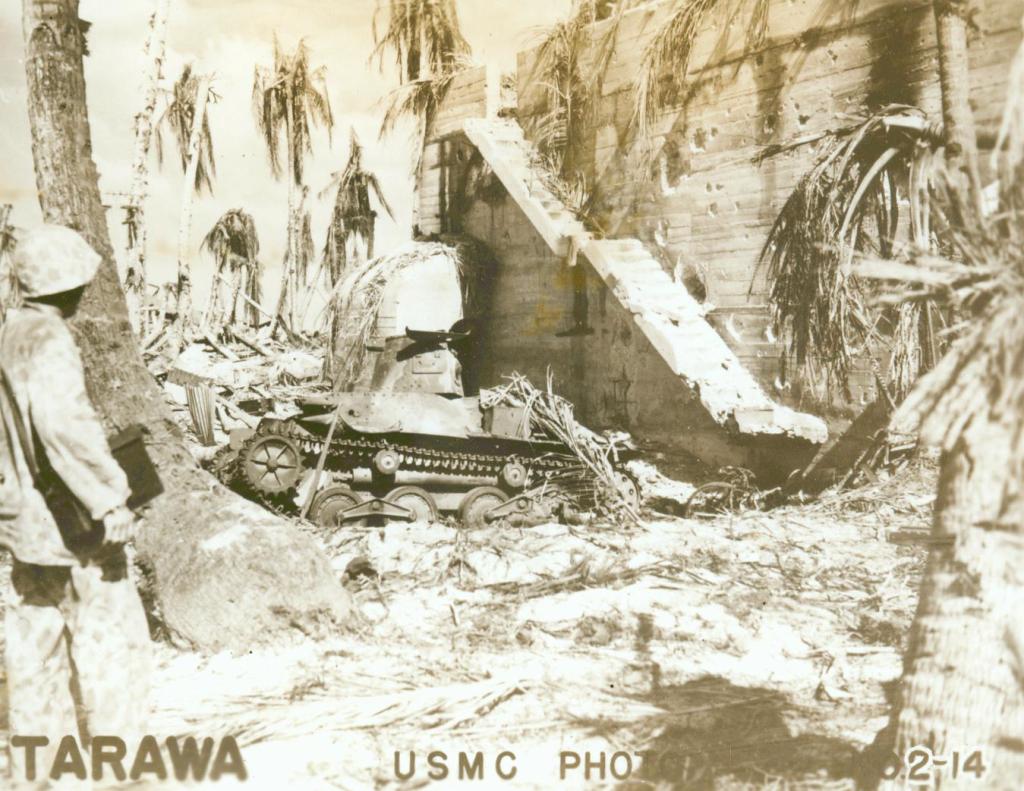 Below, a knocked-out fortified building and Type 95 tank—this is the south side of what was Japanese commanding officer Rear Admiral Keiji Shibasaki’s headquarters.