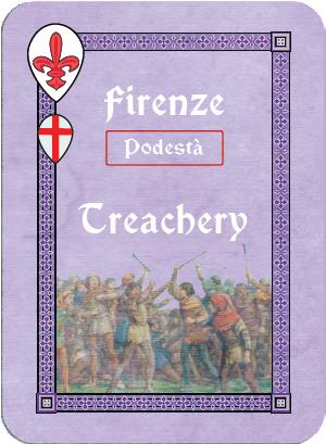 But Turn 2 is not quite over! Recall that my Guelphs received a Treachery card for Firenze from an Event (GENOVA) at the beginning of Turn 2. So I already had the opportunity to add a Treachery card to my Plan stack of Command cards for this turn.